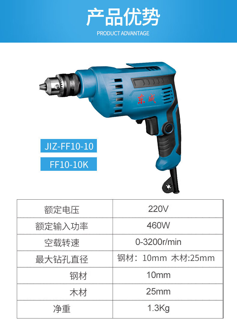 商品名称:东成电钻J1Z-FF10-10K 460W正反转可调速多功能电钻