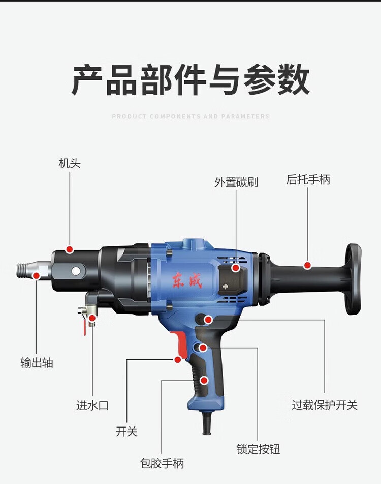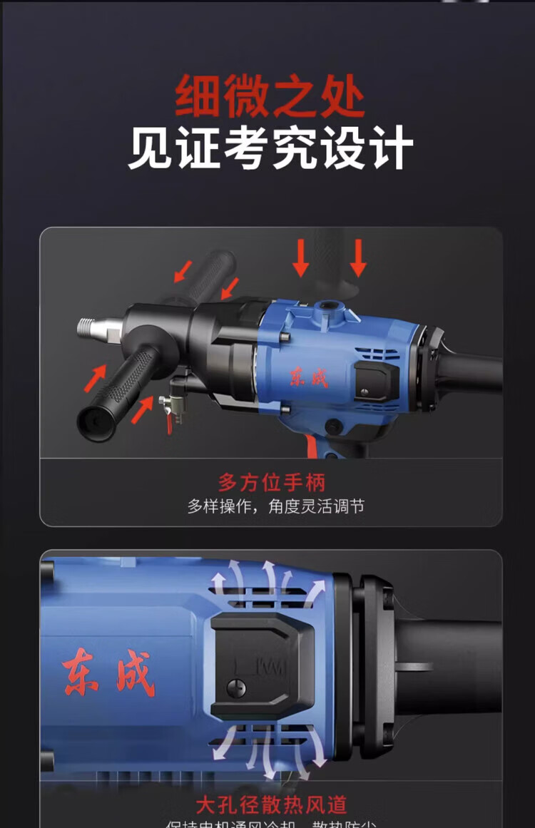 包装清单:1东成金刚石钻孔机Z1Z-FF02-190有水封手持式打洞开孔水转机东城台式空调打洞钻孔机