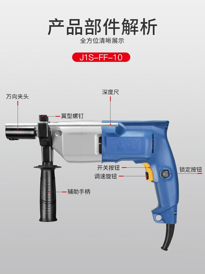 包装清单:1东成电动钻孔工具J1S-FF-10/J1S-FF02-10无极变速攻牙机