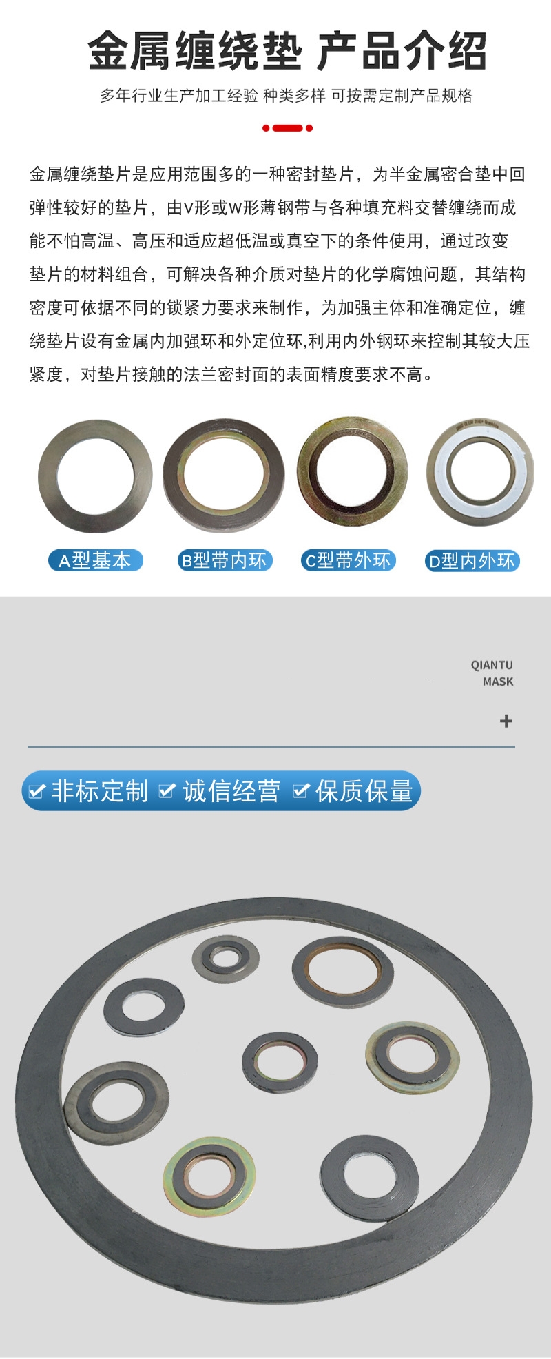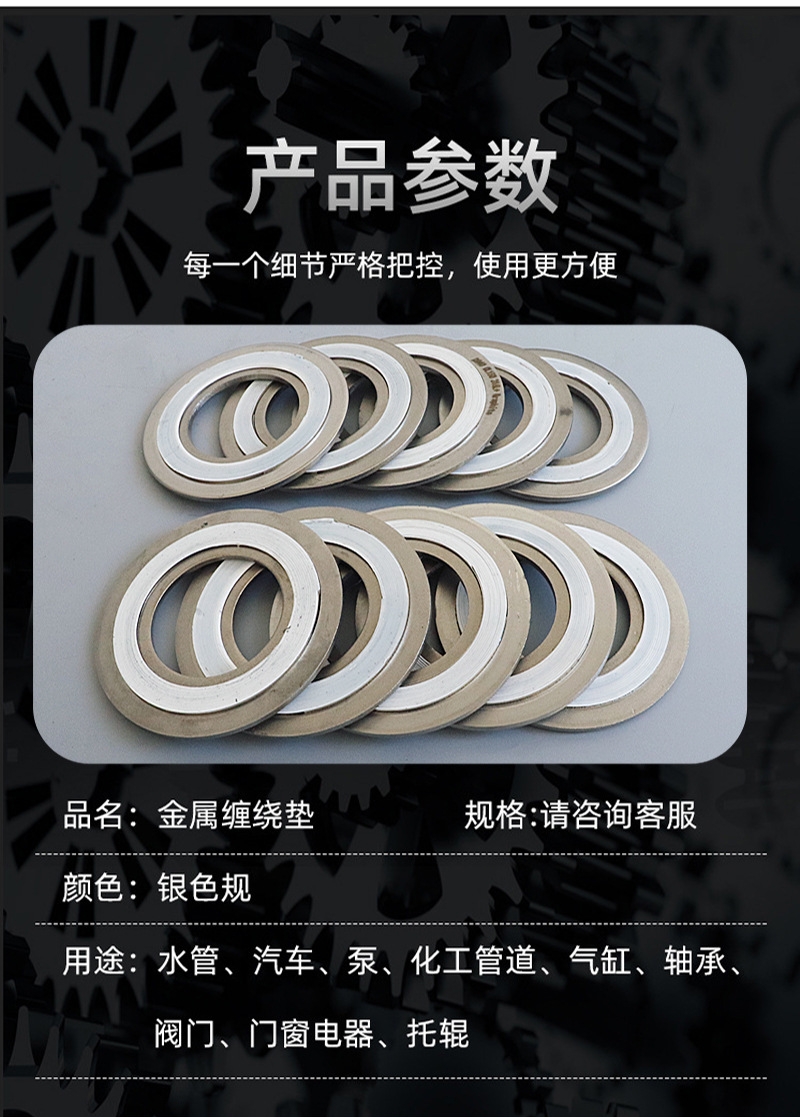 包装清单:1合恒工品 内环型金属缠绕垫 不锈钢高压金属石墨垫内环凹凸面