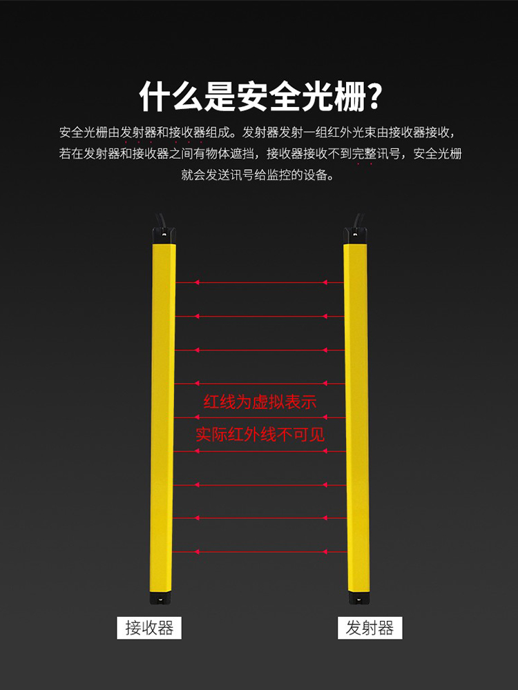 包装清单:1安信 安全光栅传感器 AXB14-40 40间距 保护高度520mm 14条光束