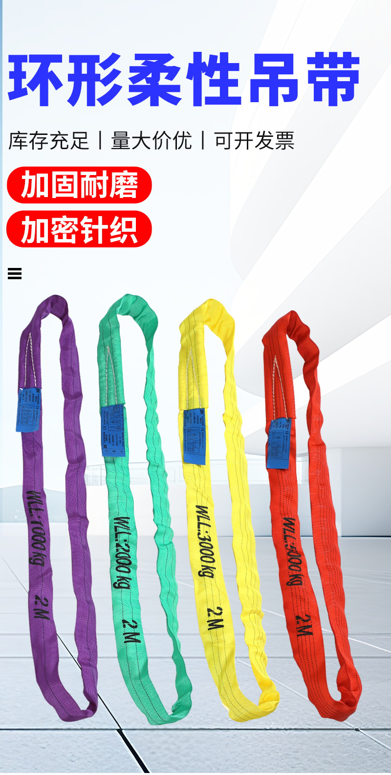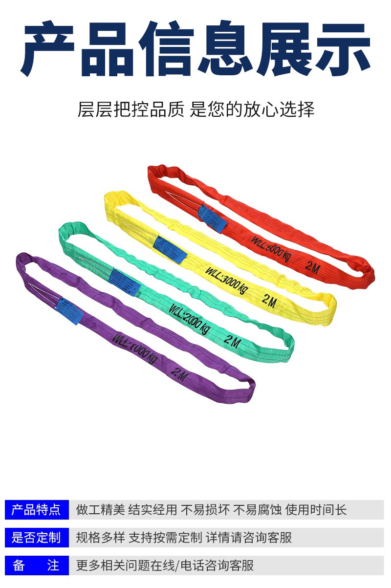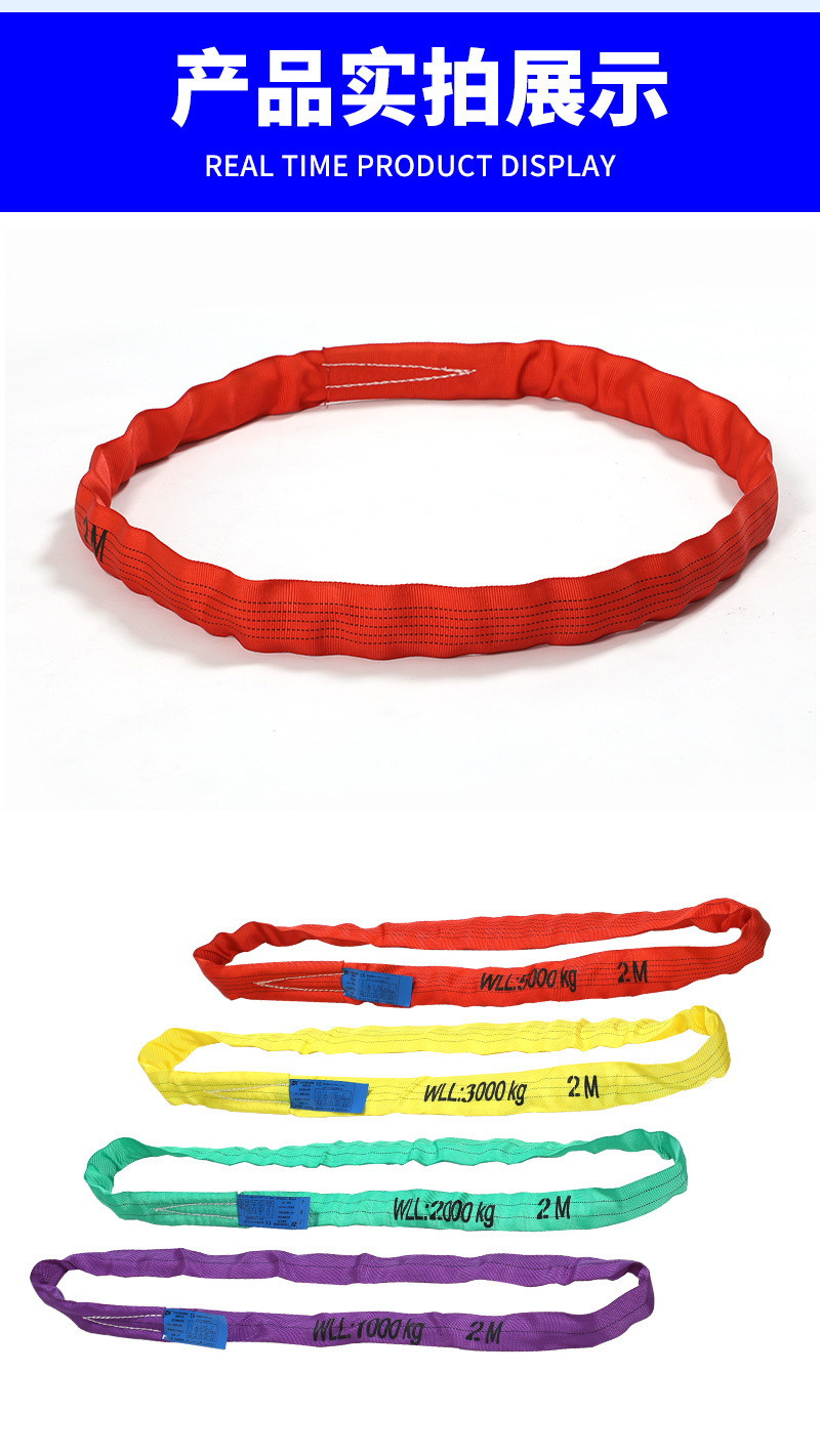 包装清单:1大雁5T红色 柔性环形吊装带 彩色柔性圆形软吊带 涤纶起重行车吊绳吊装