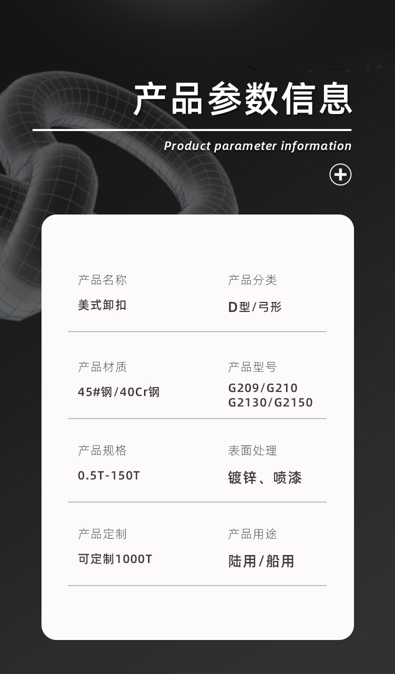 商品名称:大雁高强度209弓形卸扣弓美式弓形卸扣 吊钩吊耳起重卸扣