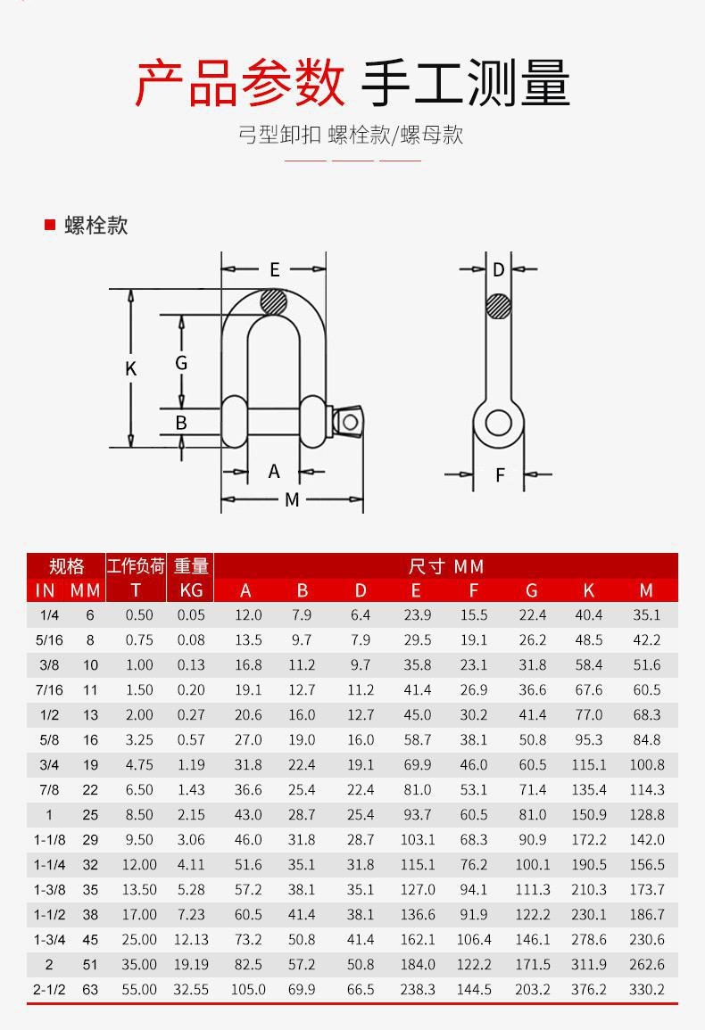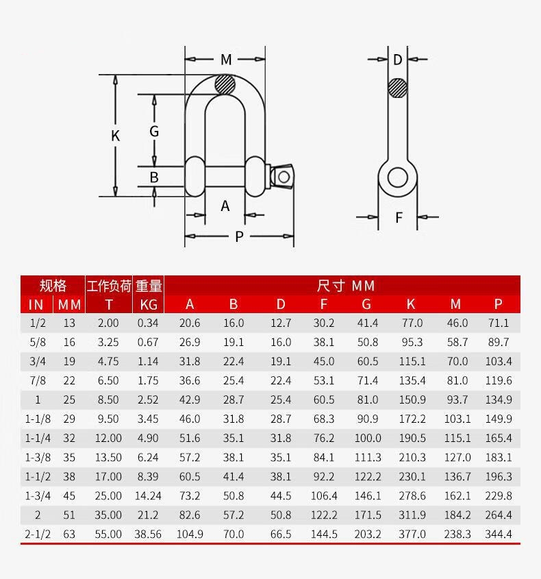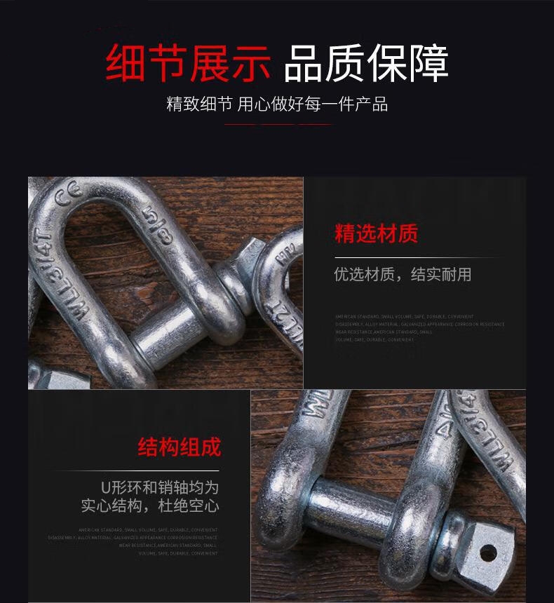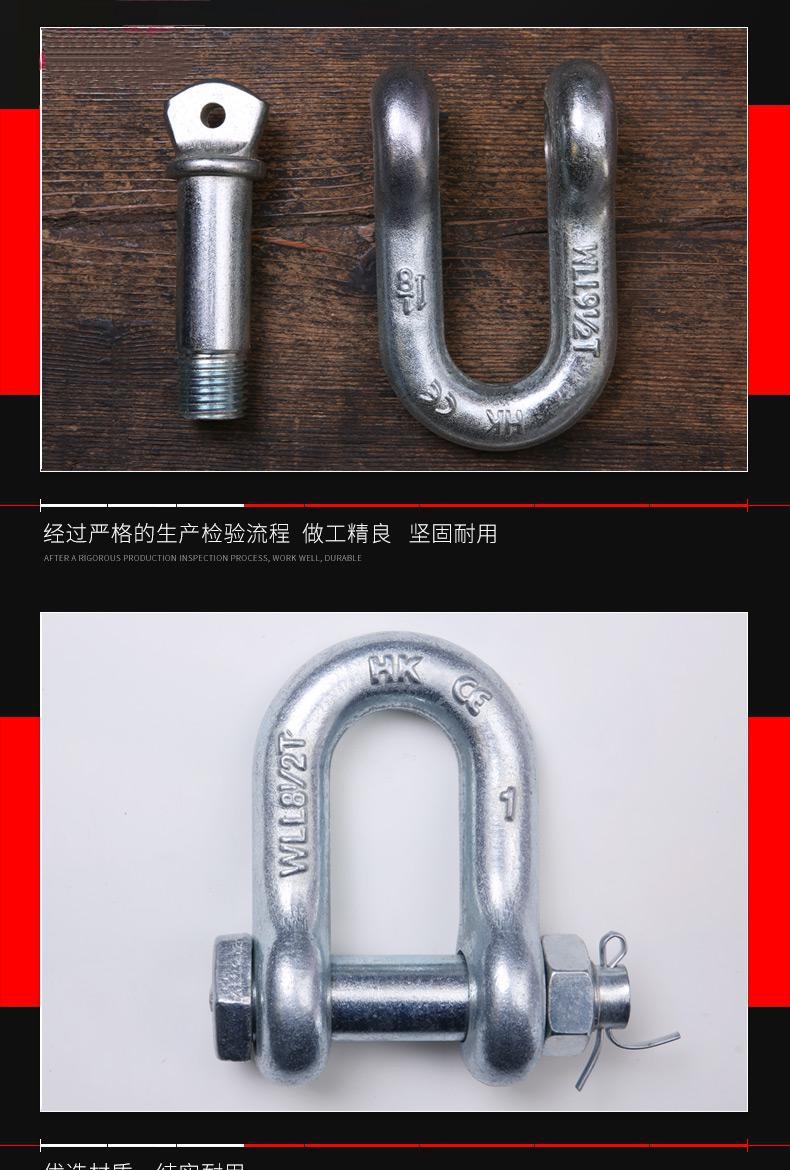 包装清单:1大雁高强度D型卸扣u形扣起重吊装工具吊环d型锁扣卡扣固