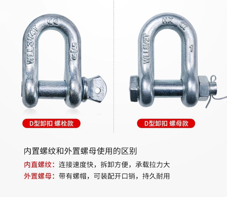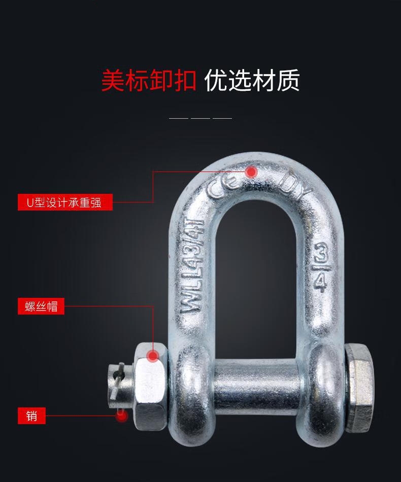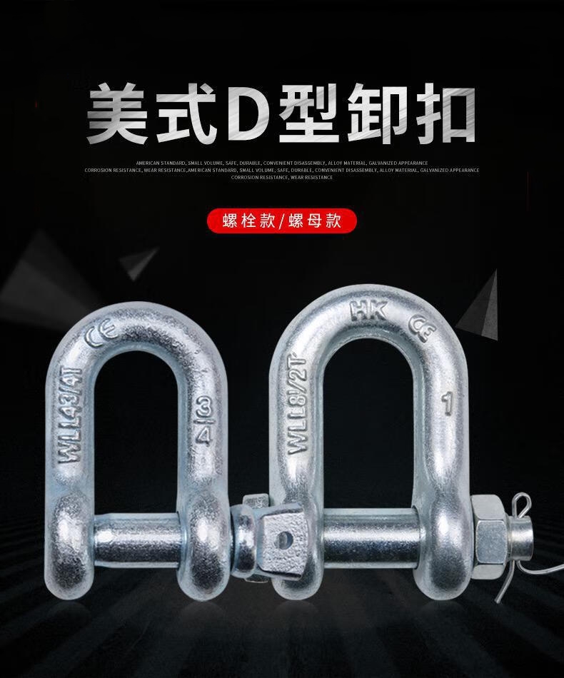 商品名称:大雁高强度D型卸扣u形扣起重吊装工具吊环d型锁扣卡扣固