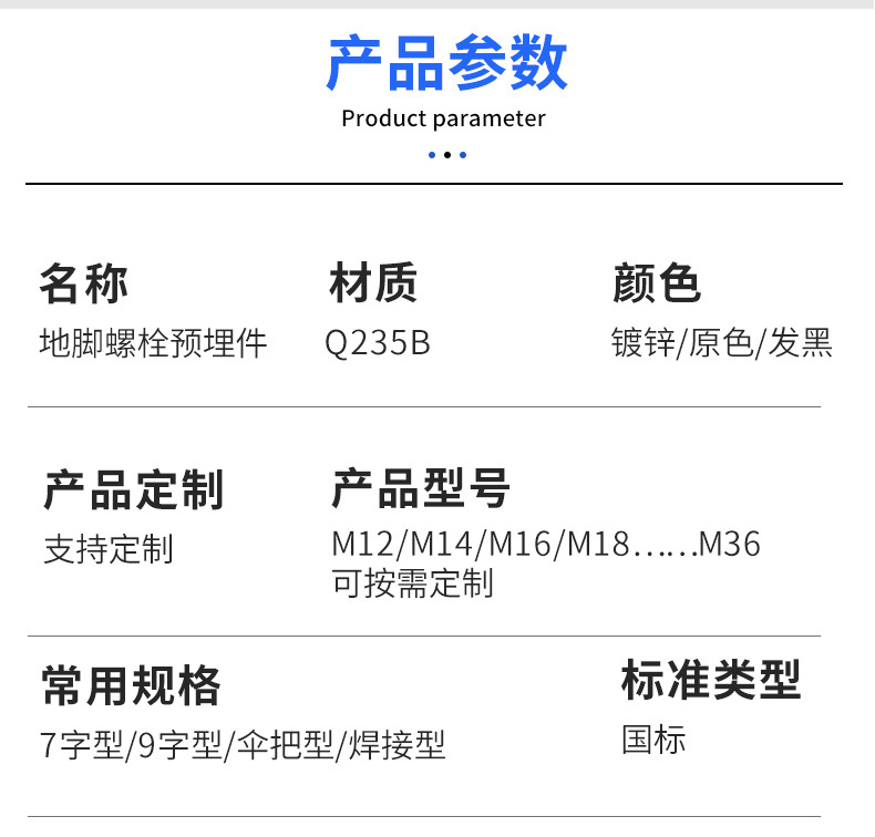 包装清单:1合恒工品 9字地脚螺栓 规格齐全 坚固耐用 可定制 硬度高螺栓