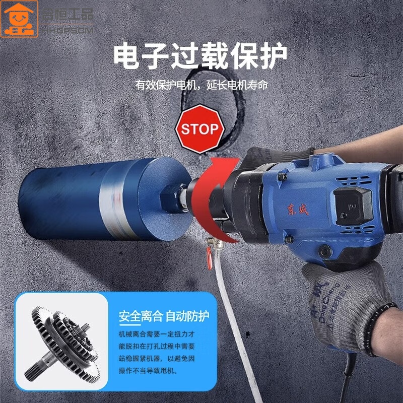 东成金刚石钻孔机Z1Z-FF02-190有水封手持式打洞开孔水转机东城台式空调打洞钻孔机
