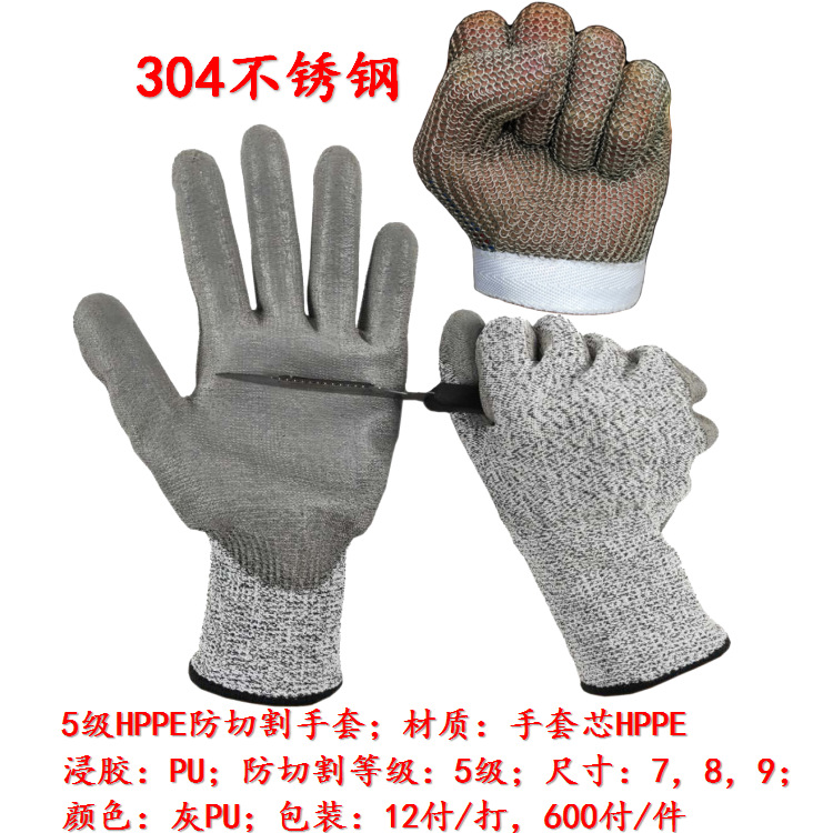 包装清单:1援手 防切割手套、钢丝手套 21cm 防切割PU浸胶