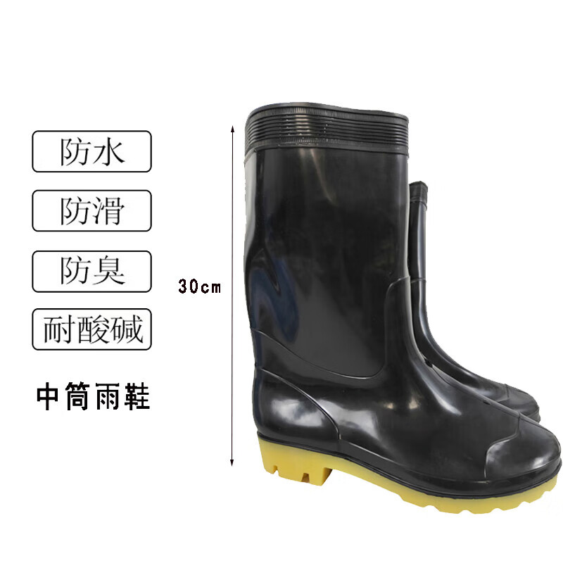 合恒工品 经济款中桶黑色雨靴 中筒黑色雨鞋 30cm 经济款中筒雨鞋