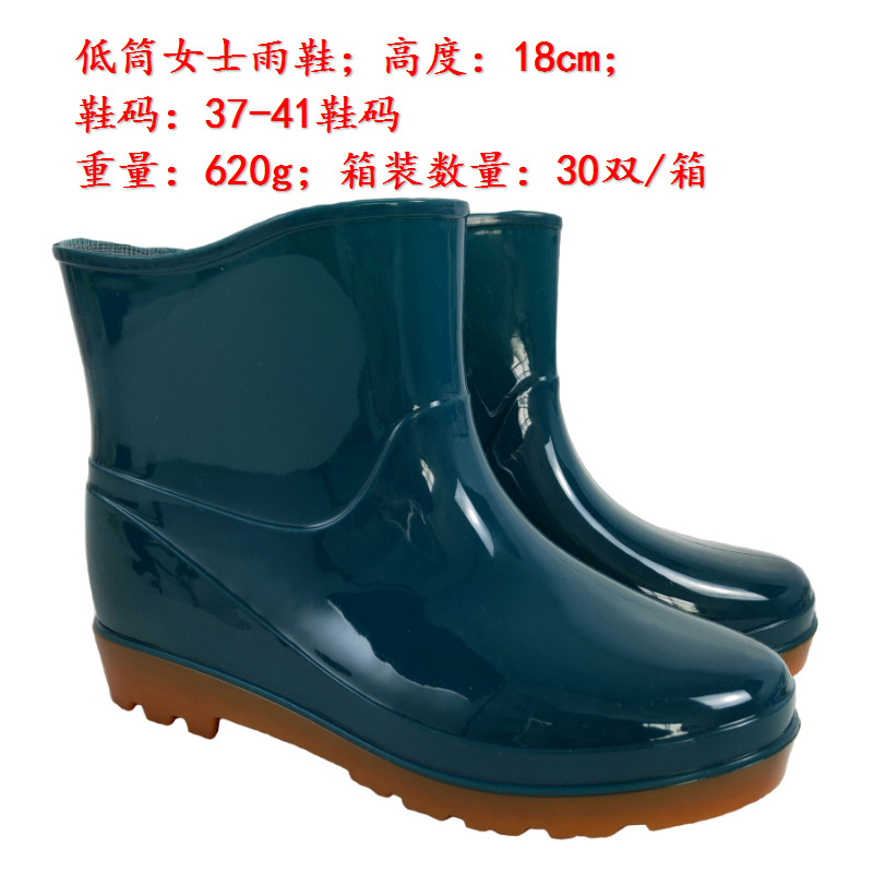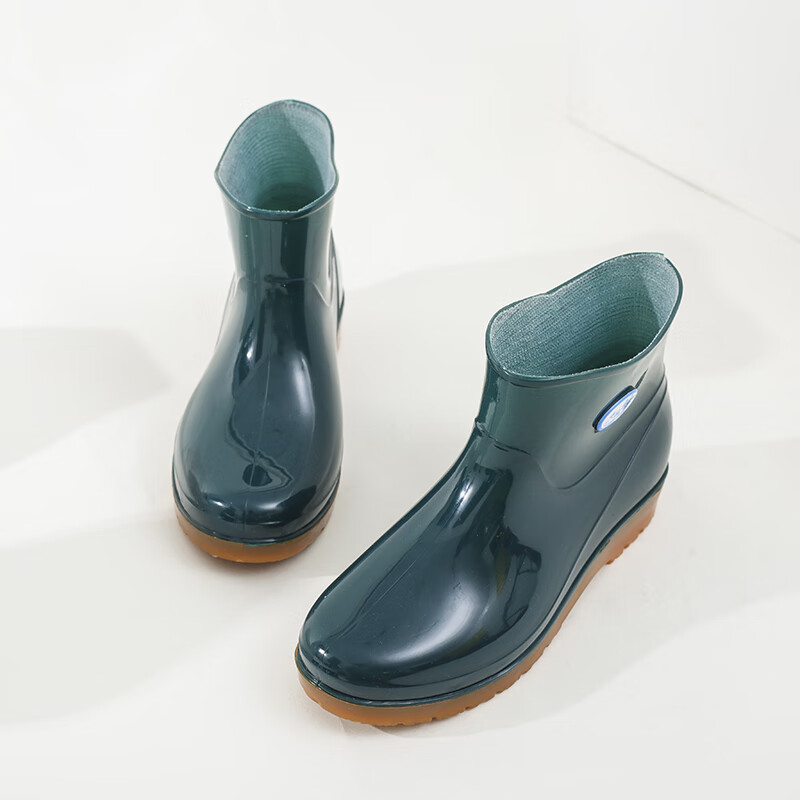 合恒工品 女士低筒橡胶雨鞋 低筒女士雨鞋18cm 低筒女靴墨绿色