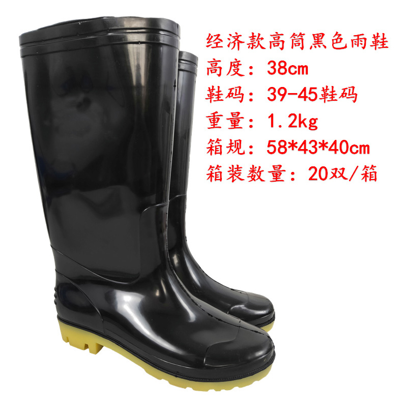 合恒工品 经济款高筒黑色雨靴 牛筋雨鞋、高筒雨鞋、雨靴 38cm 经济牛筋底高筒