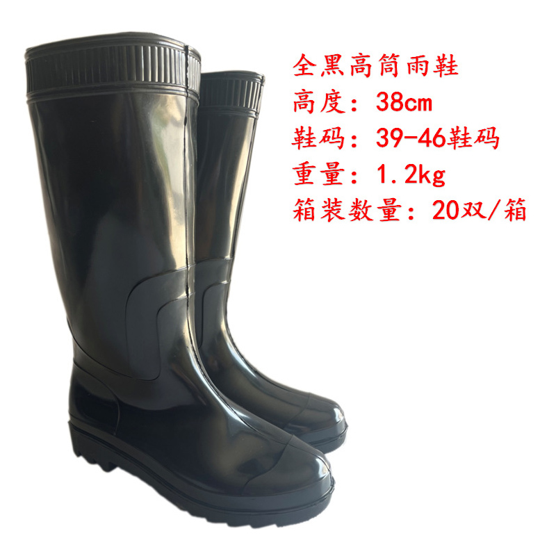 合恒工品 全黑高筒雨靴 高筒雨鞋、雨靴 38cm 全新料全黑高筒