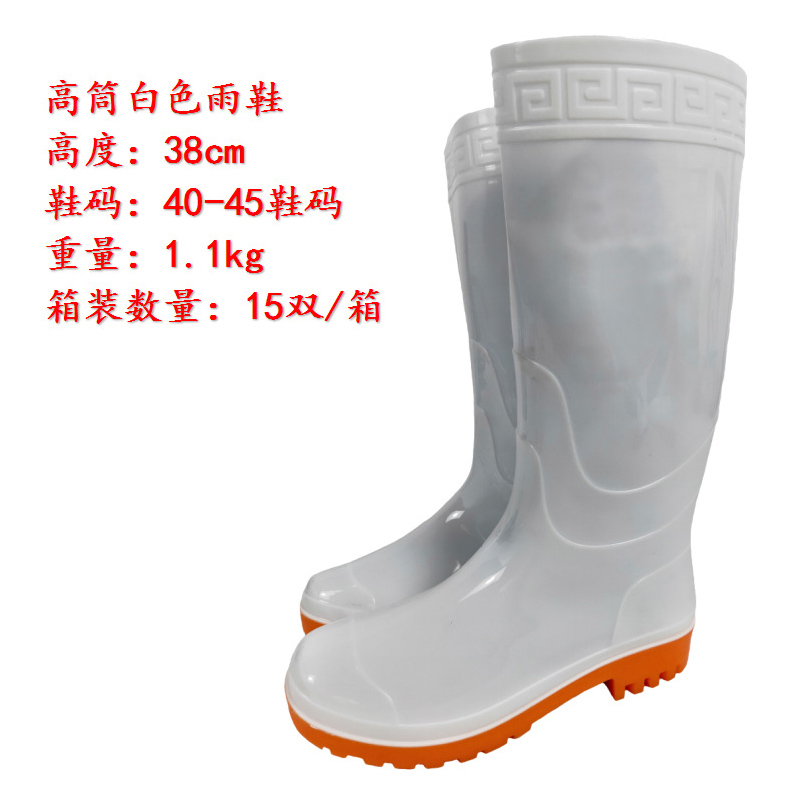 合恒工品 高筒白色橡胶雨靴 高筒白色雨鞋 38cm 高筒白色雨鞋
