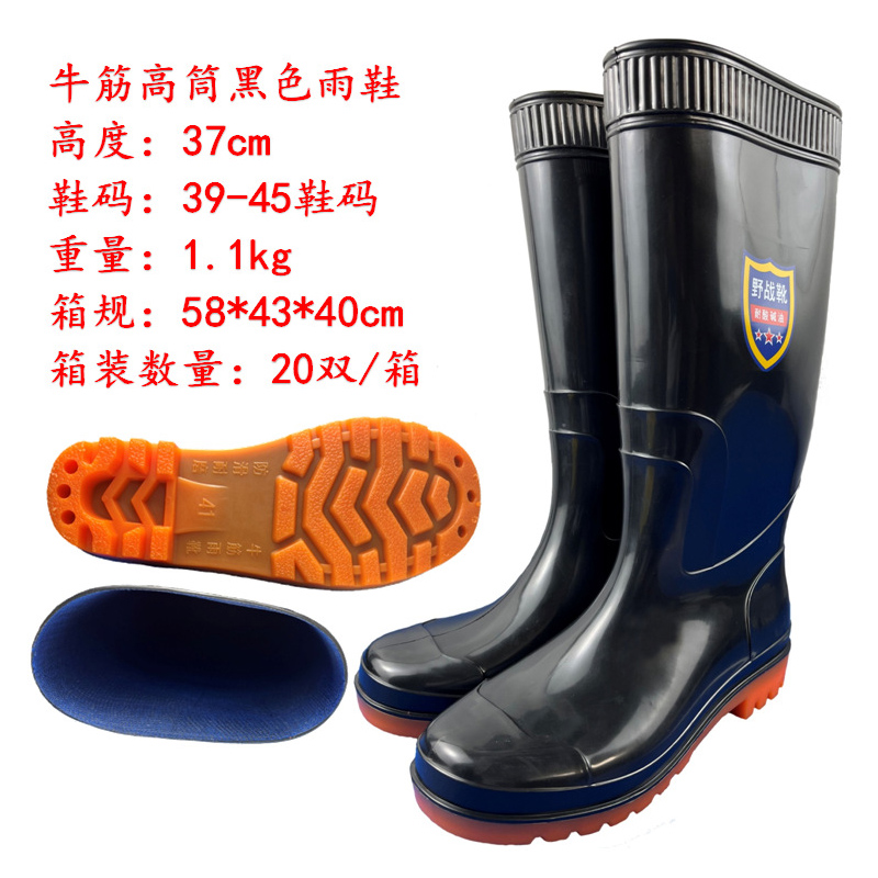 合恒工品 牛筋高筒黑色雨靴 牛筋雨鞋、高筒雨鞋、雨靴 37cm 加厚牛筋高筒