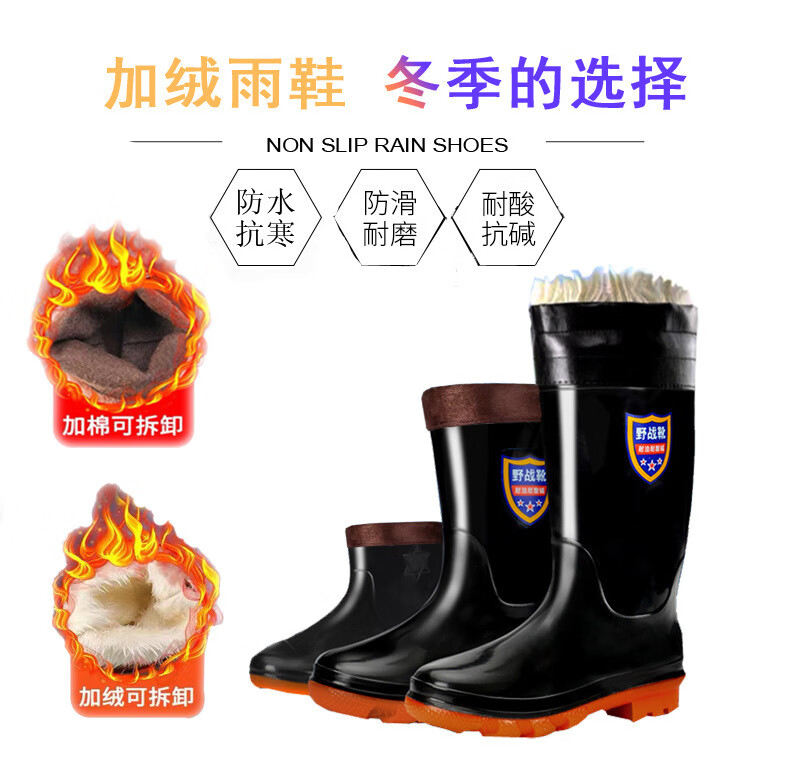 包装清单:1合恒工品 橡胶高筒加棉雨靴 加棉雨鞋、反光雨鞋 38cm 加棉反光高筒