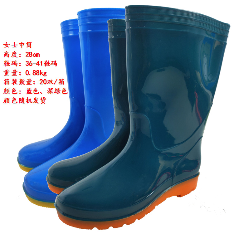 商品名称:合恒工品 女士中筒橡胶雨鞋 女士中筒雨鞋 28cm 蓝色