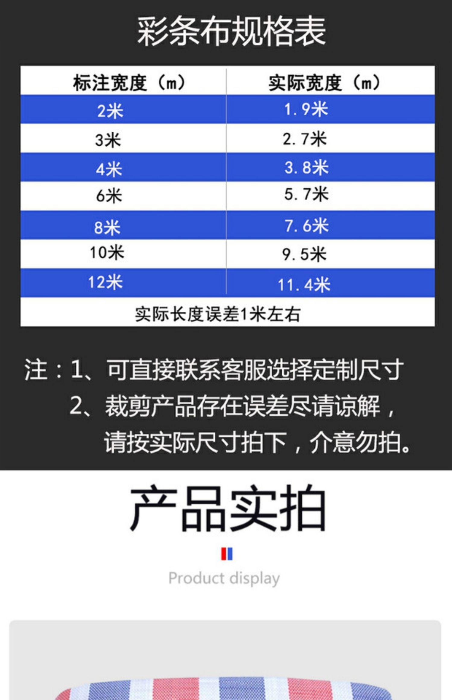 包装清单:1合恒工品彩条布防雨布 红白蓝编织布 工程围挡塑料遮阳布 三色布