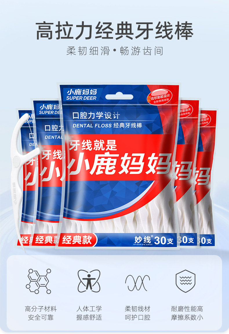 商品名称:小鹿妈妈 牙线棒 剔牙签 弓形50支盒装一次性牙线