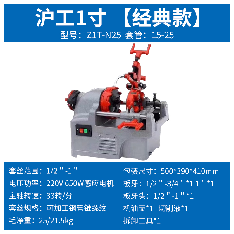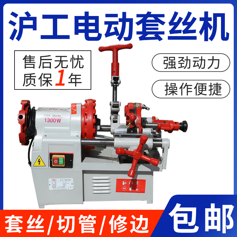现货 沪工电动套丝机220v小型全自动攻丝机镀锌管钢筋不锈钢管开丝2寸