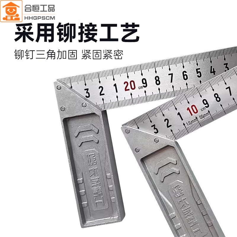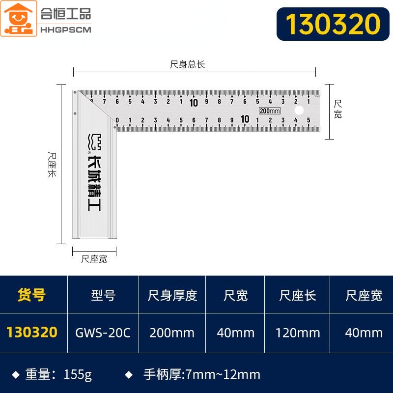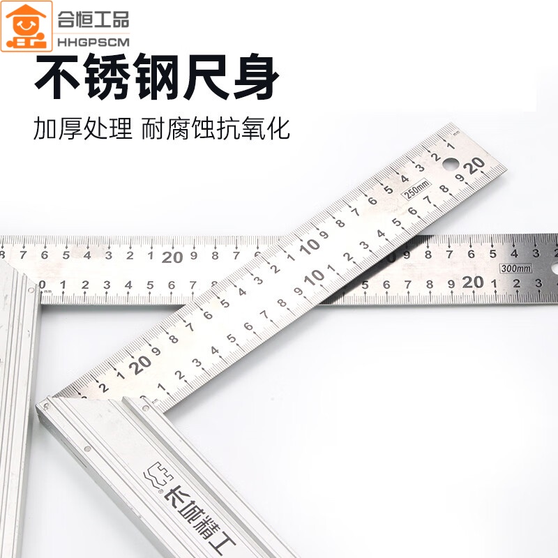 现货 长城精工锌合金座不锈钢角尺加厚不锈钢尺体双面大字描红读数清晰方便