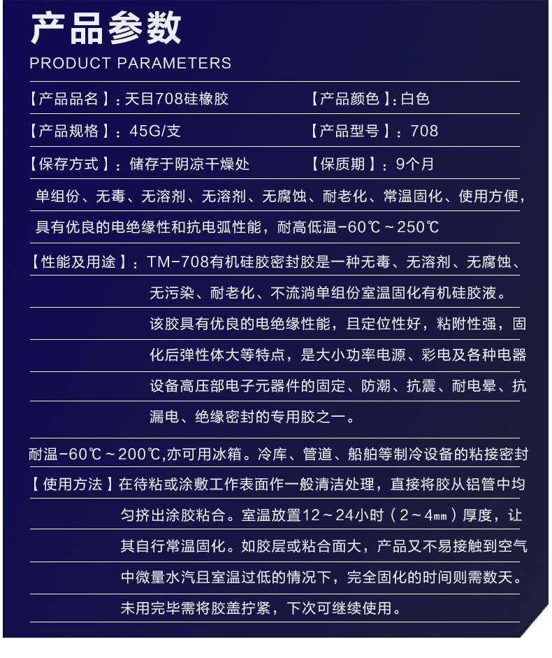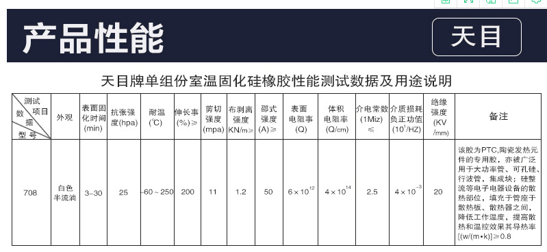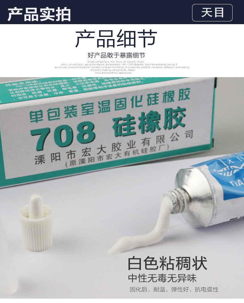 商品名称:天目708硅橡胶 浓稠性定位有机硅密封胶 防水绝缘电子固定硅胶水