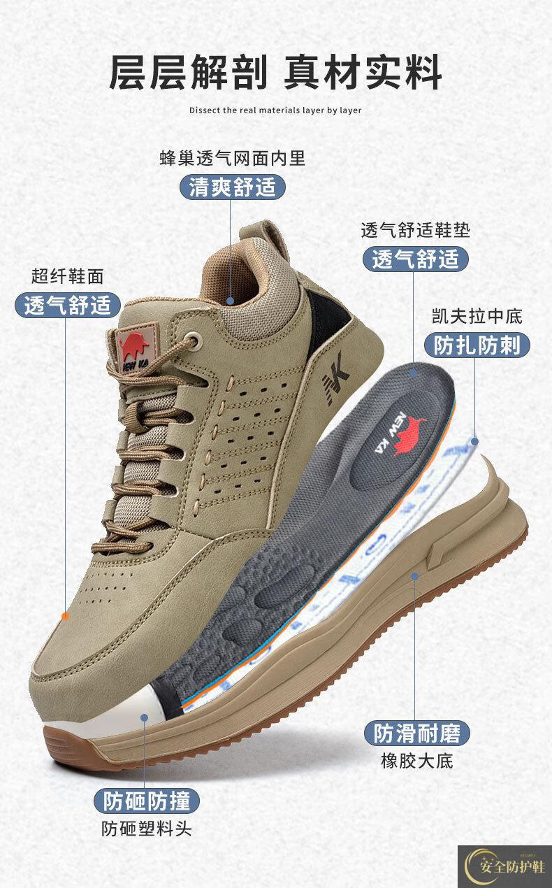 商品名称:牛卡 防砸防穿刺绝缘6KV劳保鞋 NK303 36-47 棕色 灰色 塑料头+凯夫拉中底 超纤皮+橡胶底