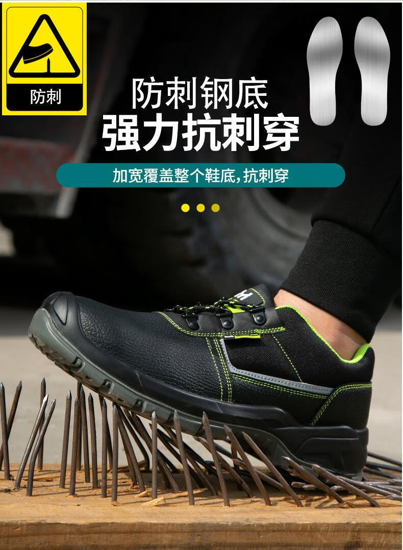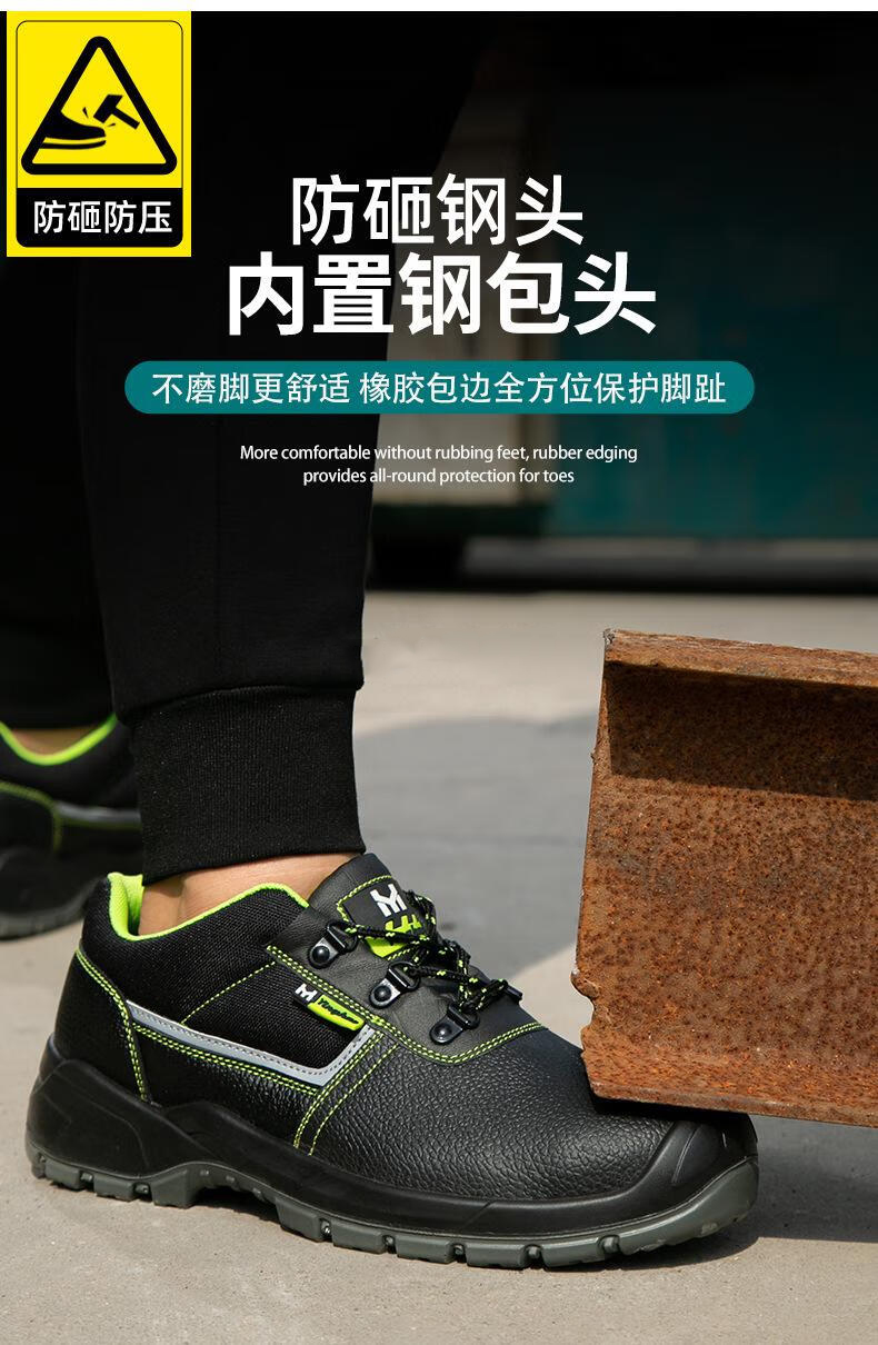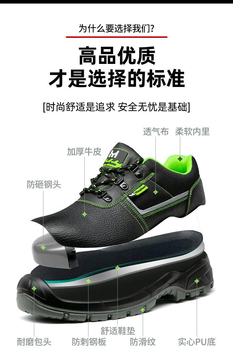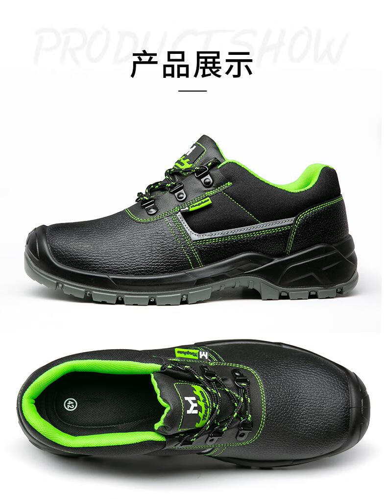 包装清单:1英豪 防砸防穿刺劳保鞋 YH925 36-46 黑色 喷塑铁头+铁底 二层牛皮+PU实心底