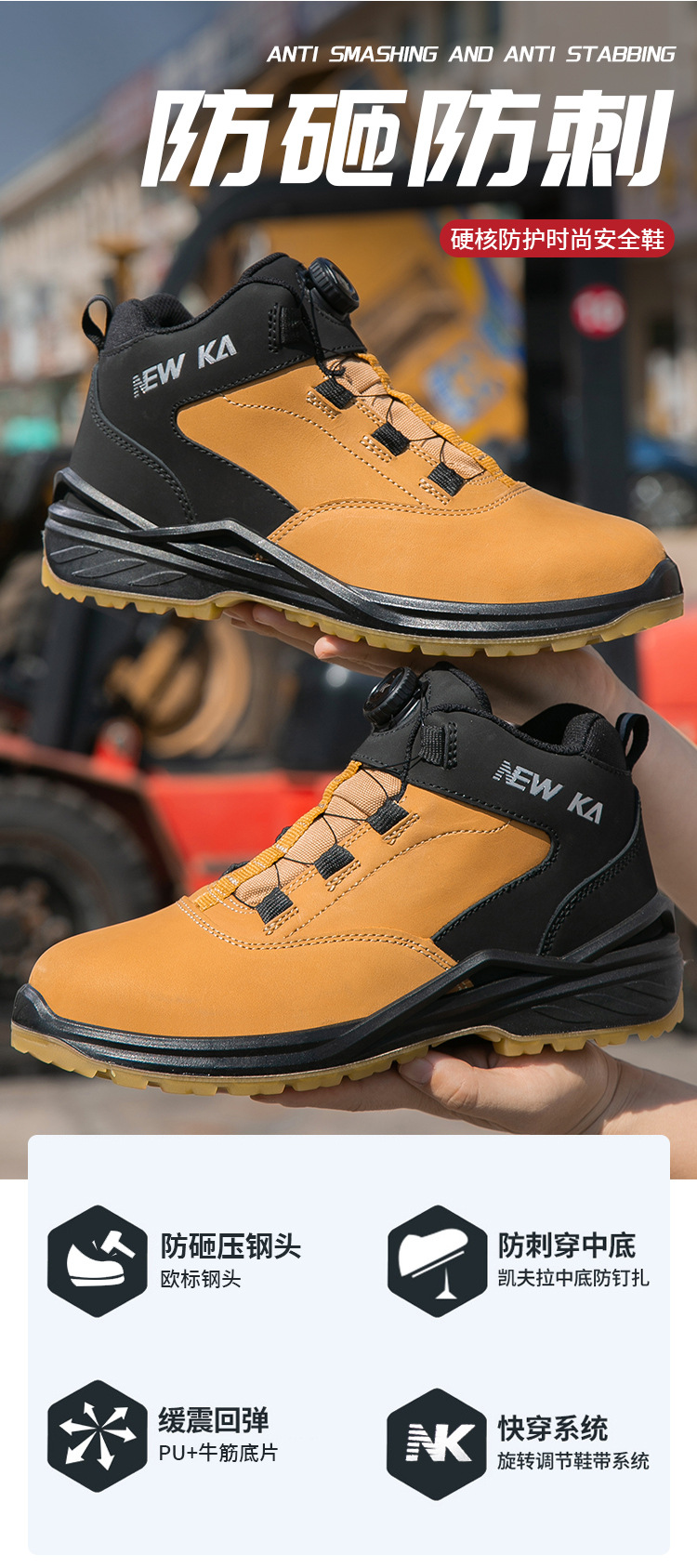 商品名称:牛卡 防砸防穿刺劳保鞋 NK301 36-46 棕色 欧标钢头+钢底 磨砂牛皮+PU实心底