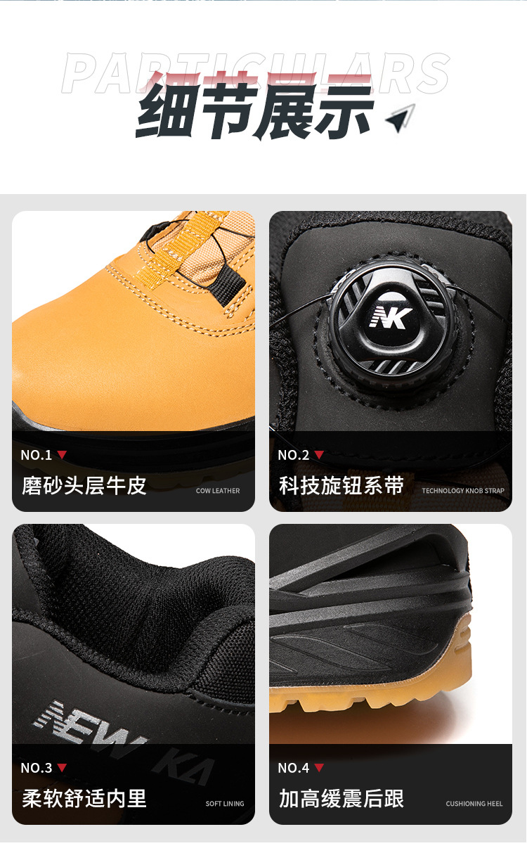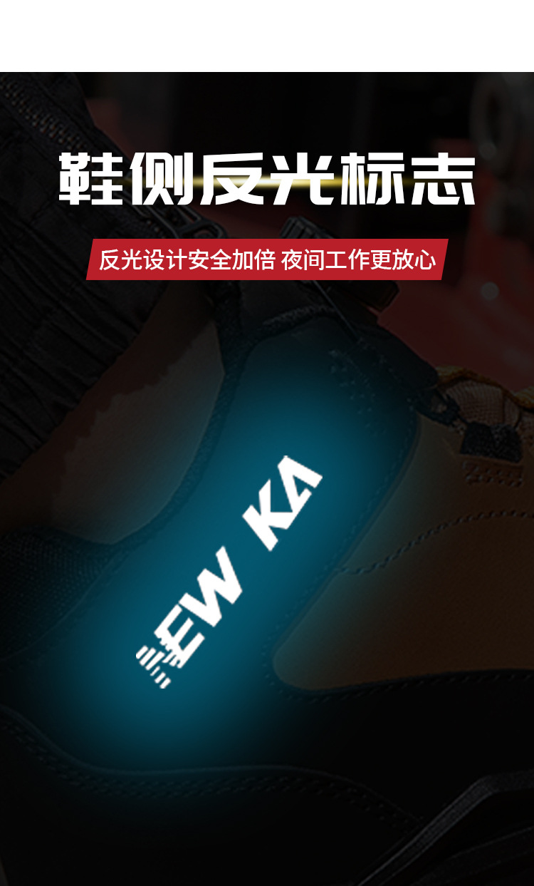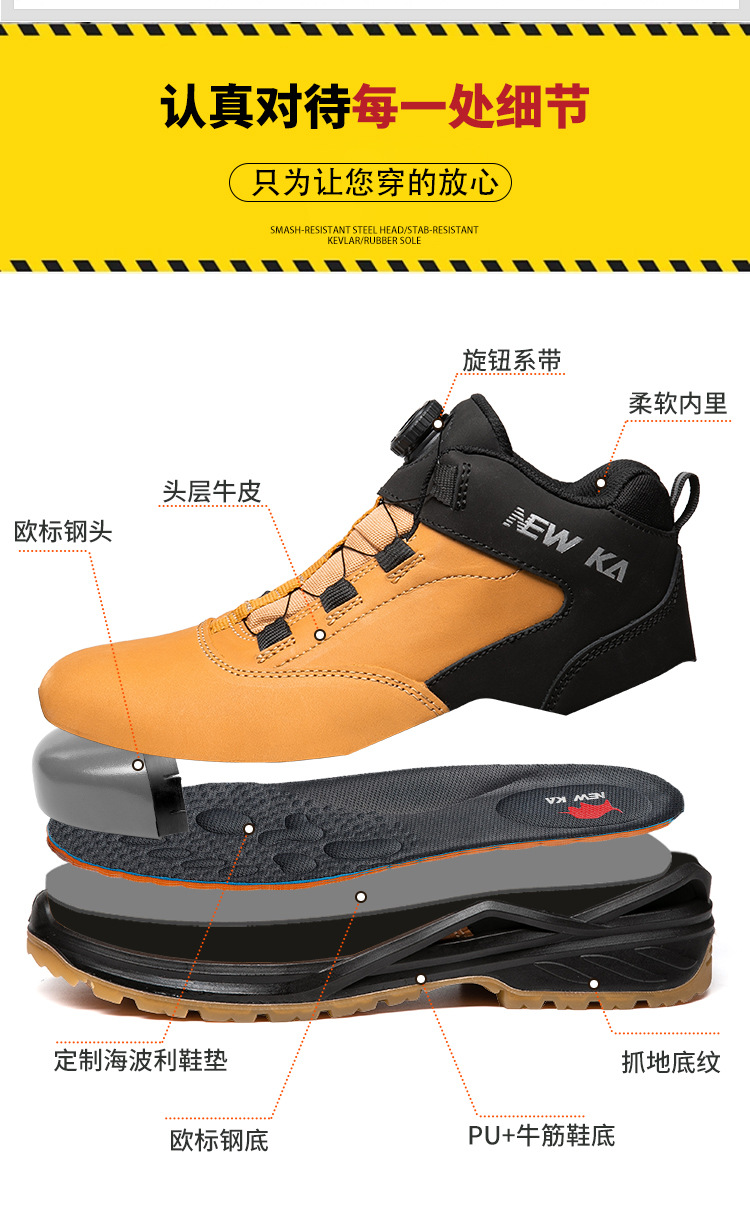 包装清单:1牛卡 防砸防穿刺劳保鞋 NK301 36-46 棕色 欧标钢头+钢底 磨砂牛皮+PU实心底