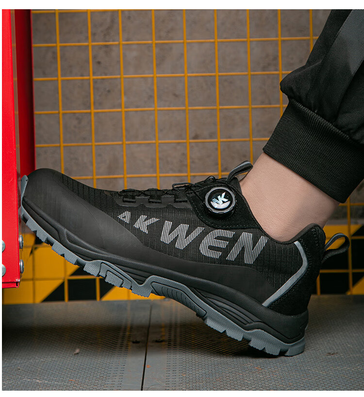 包装清单:1牛卡 防砸防穿刺劳保鞋 NK305 36-46 黑色 欧标钢头+凯夫拉中底 飞织网布+双层MD大底