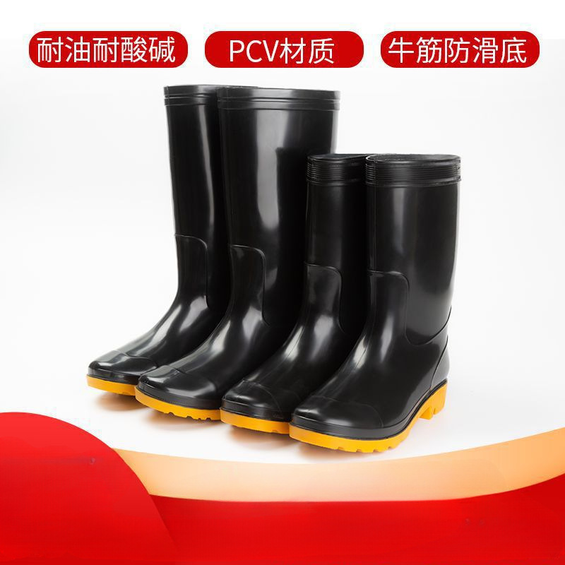 野战靴 耐酸 耐油 防水鞋 男劳保雨鞋 胶鞋 防滑黑色款