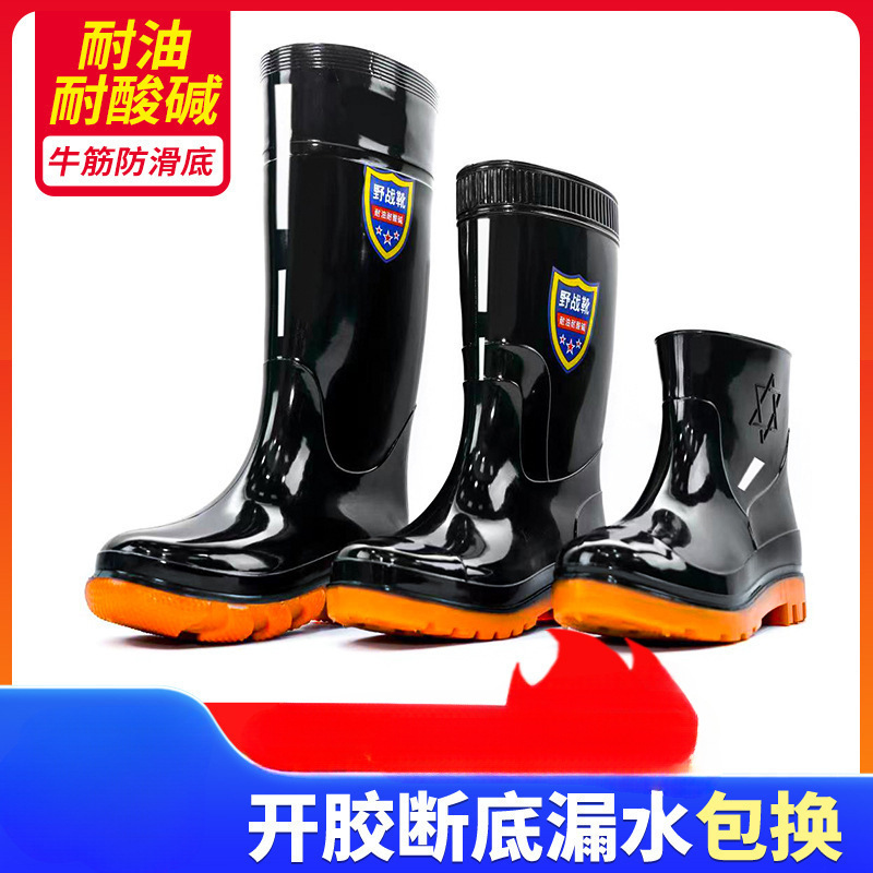 商品名称:野战靴 耐酸 耐油 防水鞋 男劳保雨鞋 胶鞋 防滑黑色款