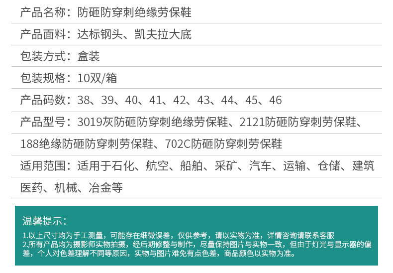 包装清单:1鲁安 秋季劳保鞋 防砸,防穿刺,防静电 轻便钢包头 绝缘劳保鞋
