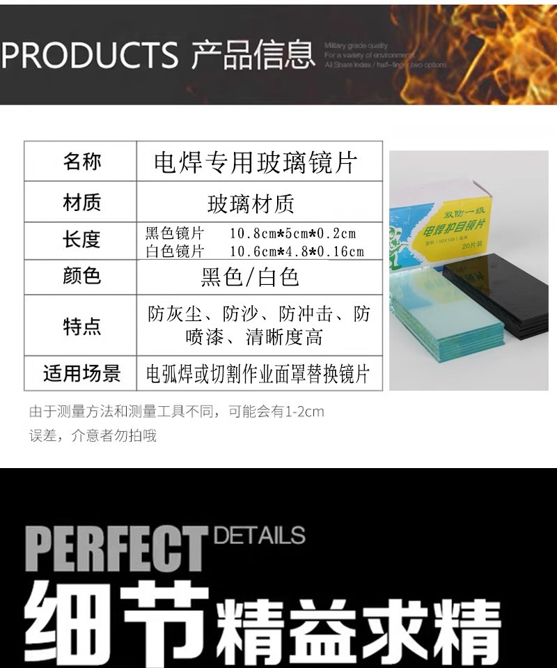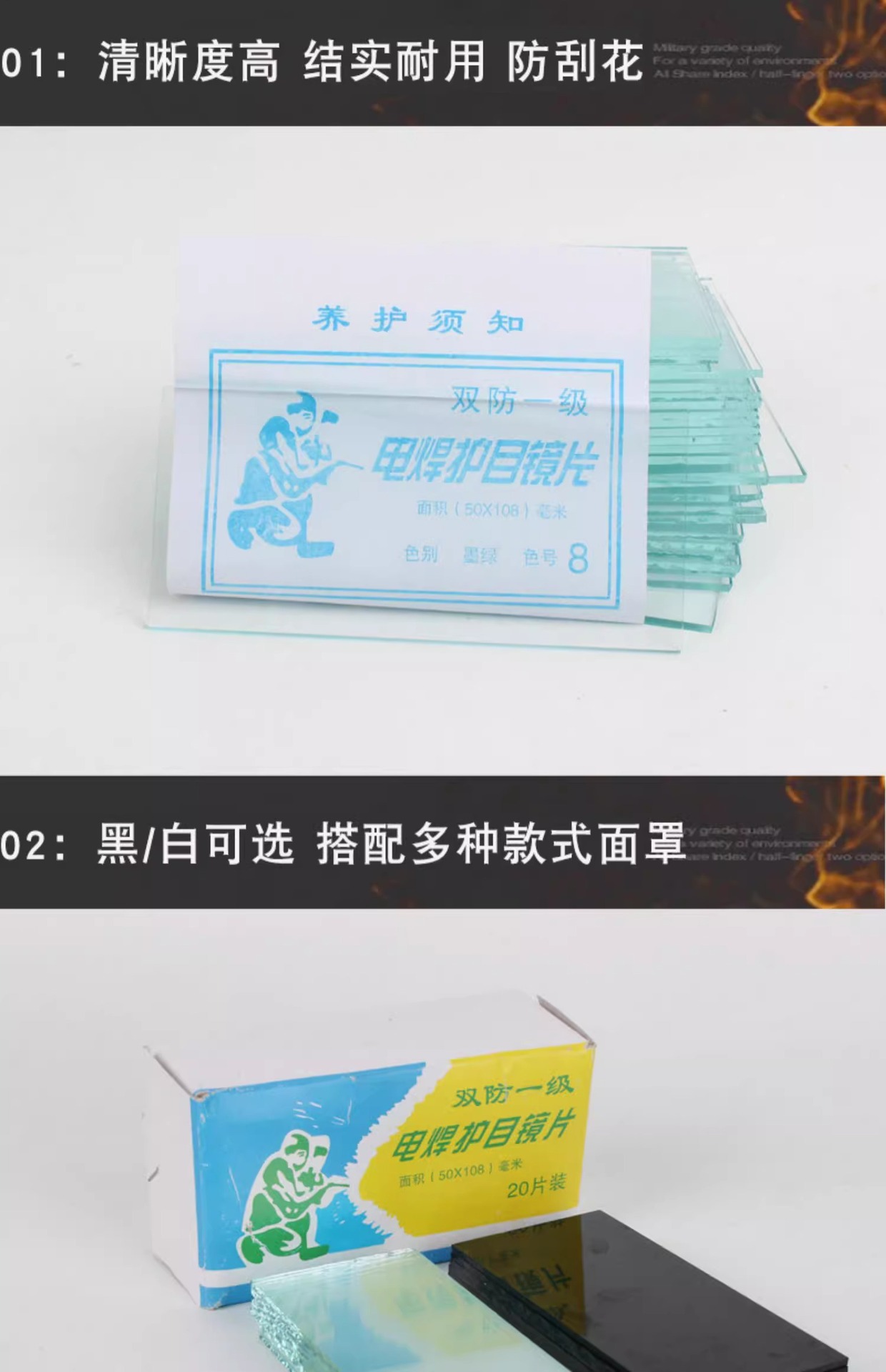 包装清单:1合恒工品 HHGP 电焊镜片 电焊镜片 透明黑白玻璃绿光7号8号9号玻璃电焊面罩