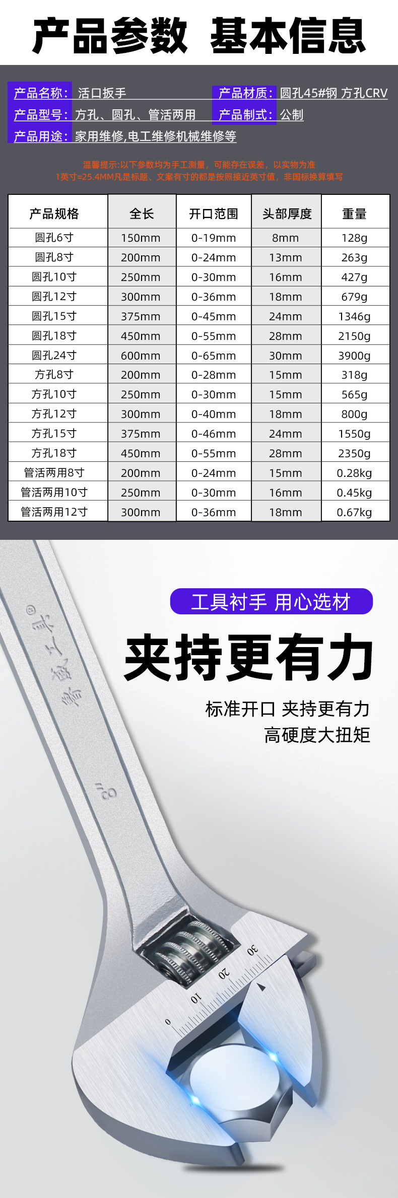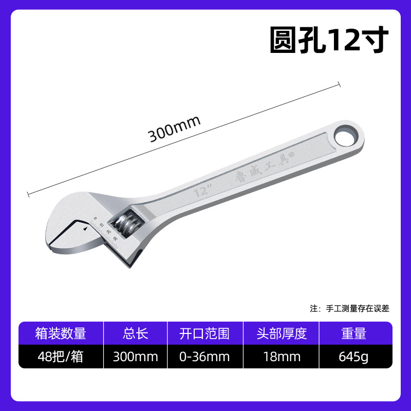 包装清单:1英迈 活动扳手工业级 12寸活动扳10寸活动板手8寸4寸活口扳手