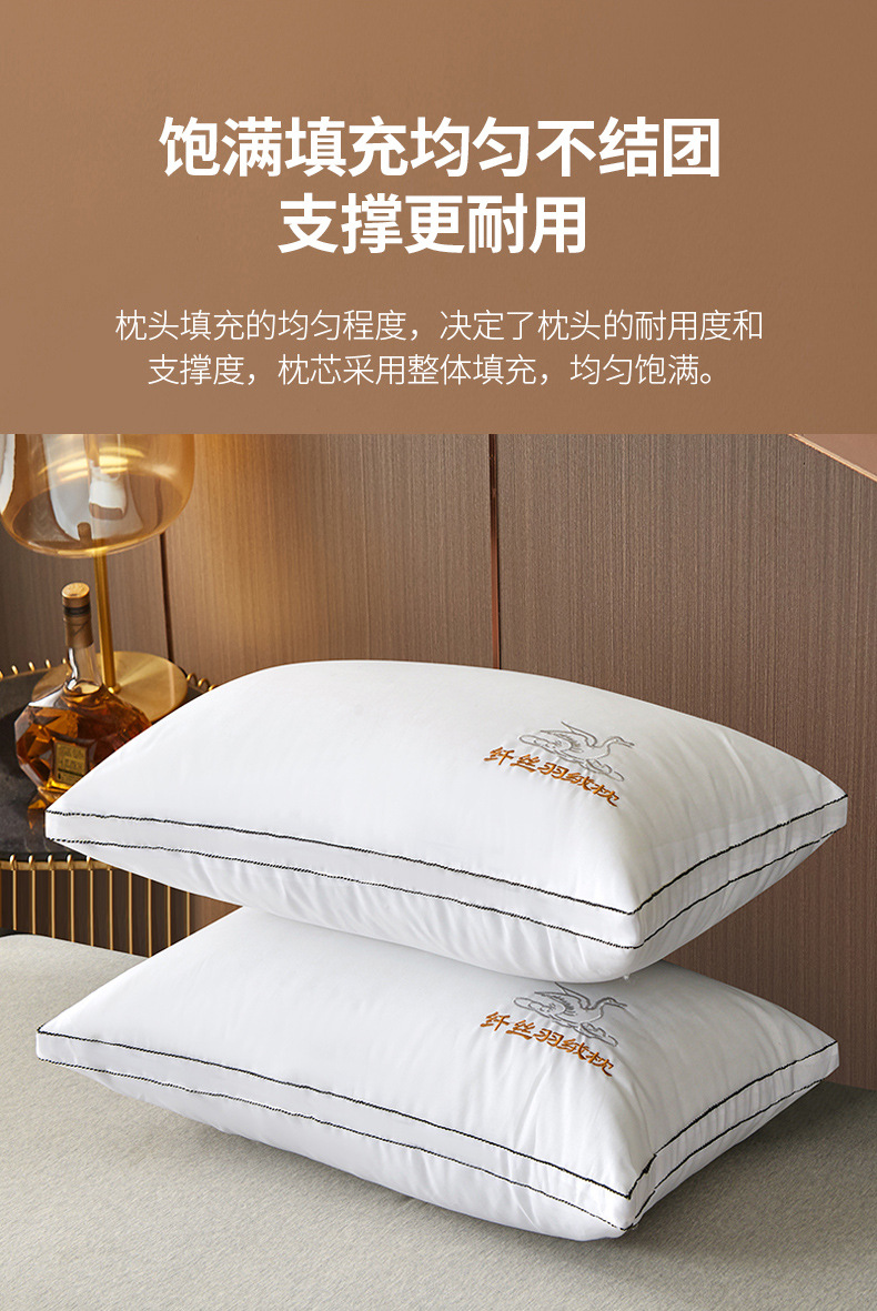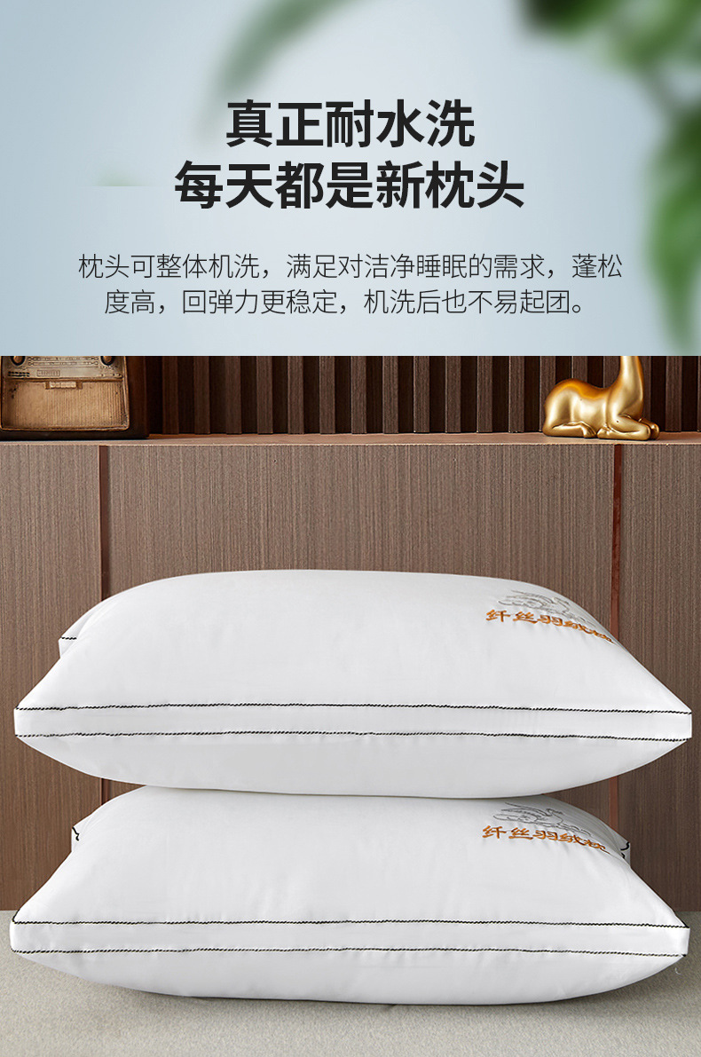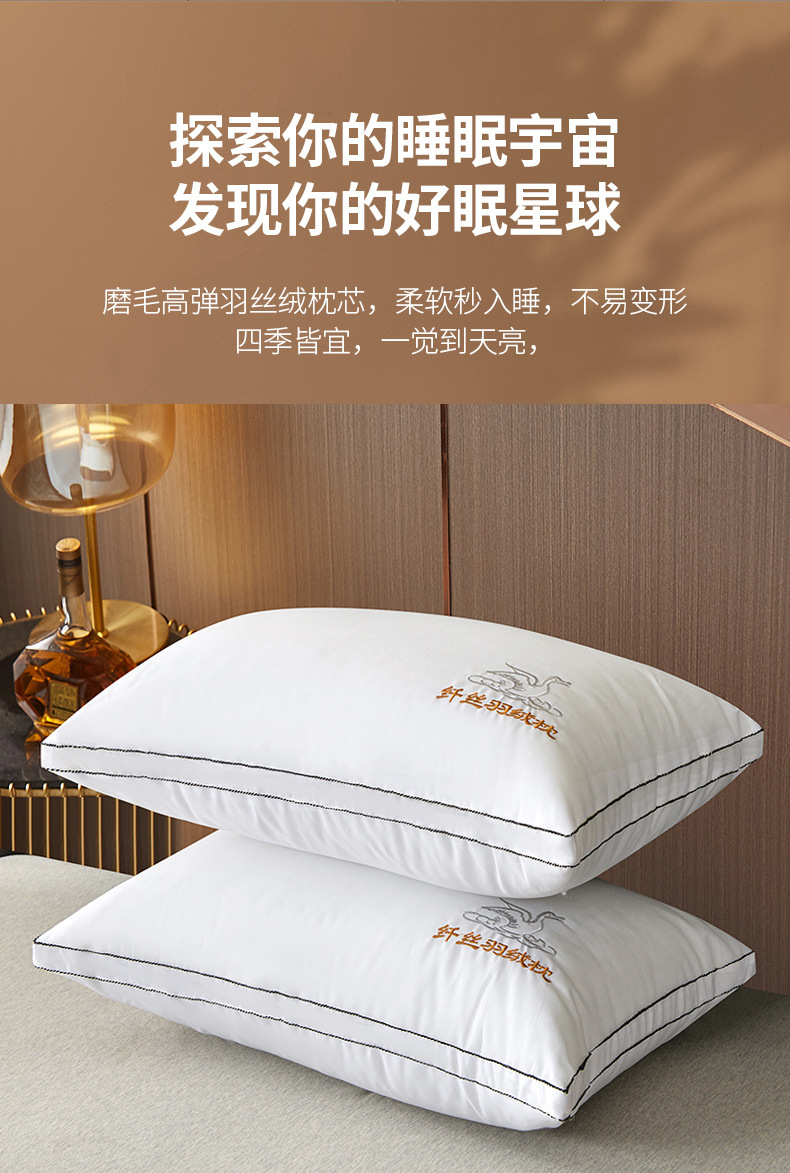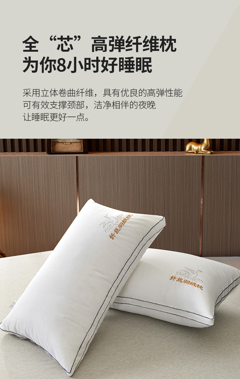 包装清单:1合恒工品酒店纤丝羽丝绒刺绣枕芯 老鸭家用高弹纤维枕 单人学生护颈枕头