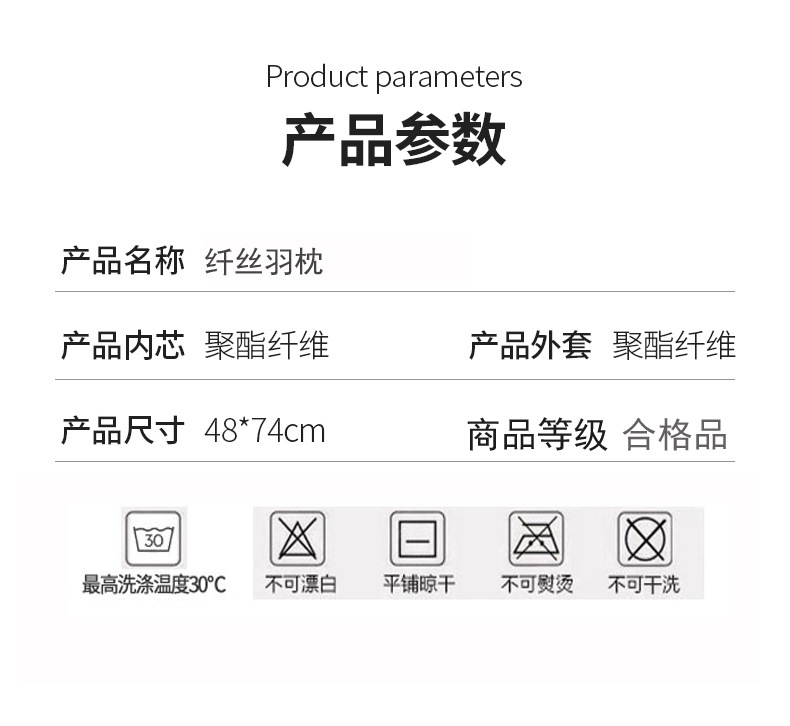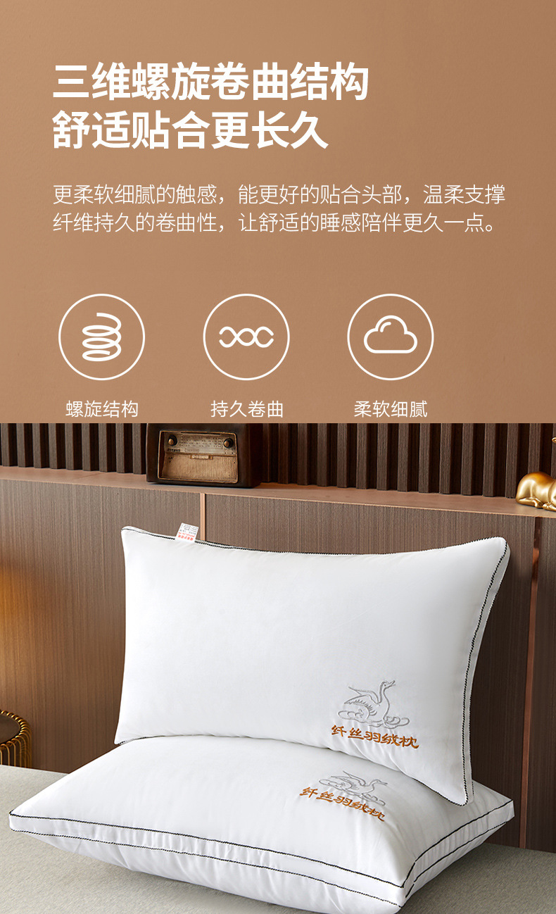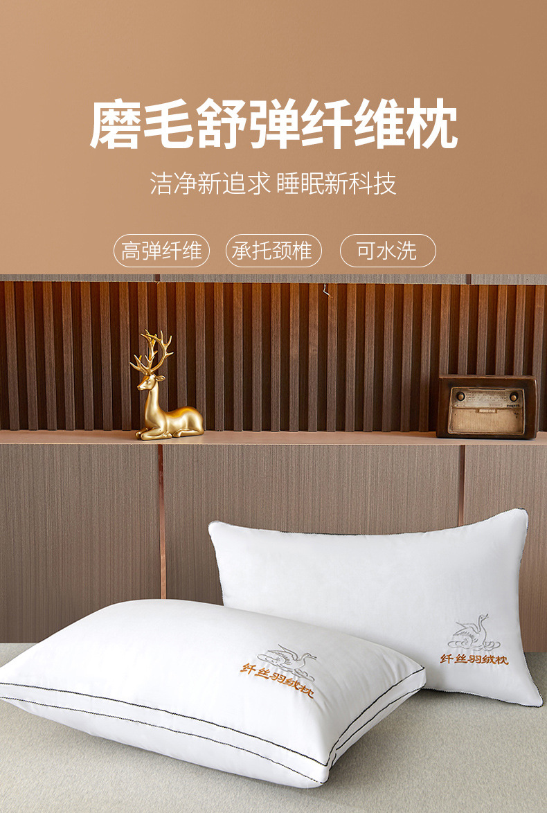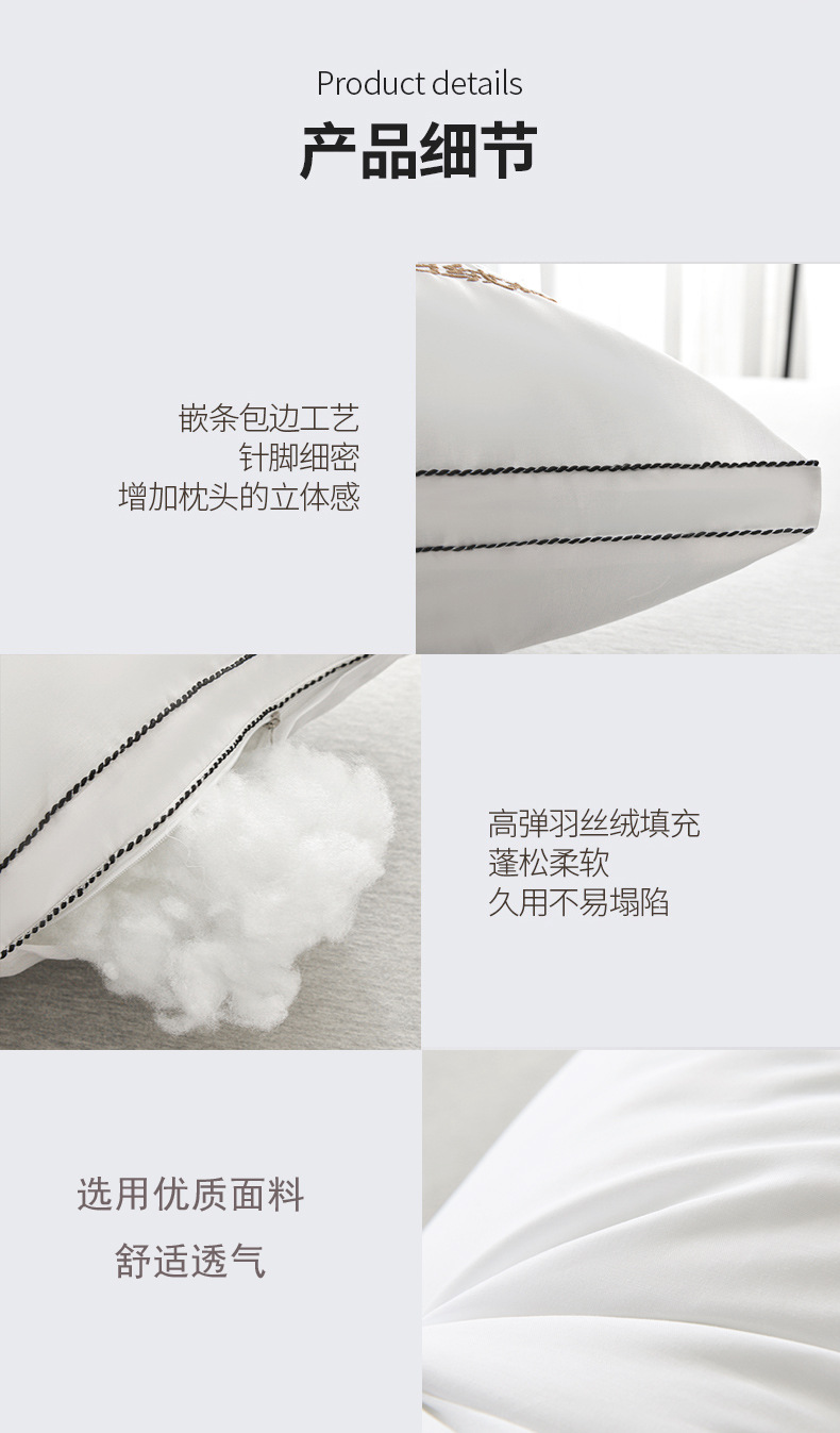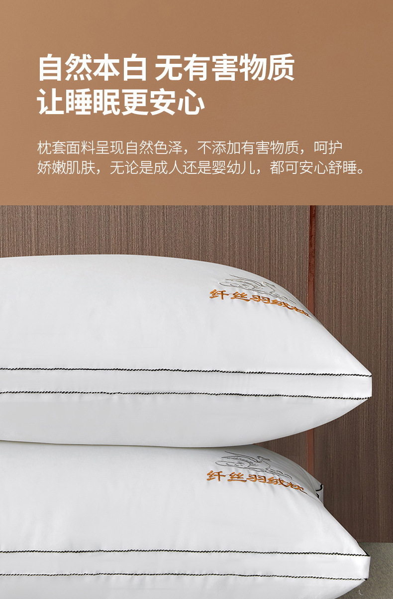 包装清单:1合恒工品酒店纤丝羽丝绒刺绣枕芯 老鸭家用高弹纤维枕 单人学生护颈枕头
