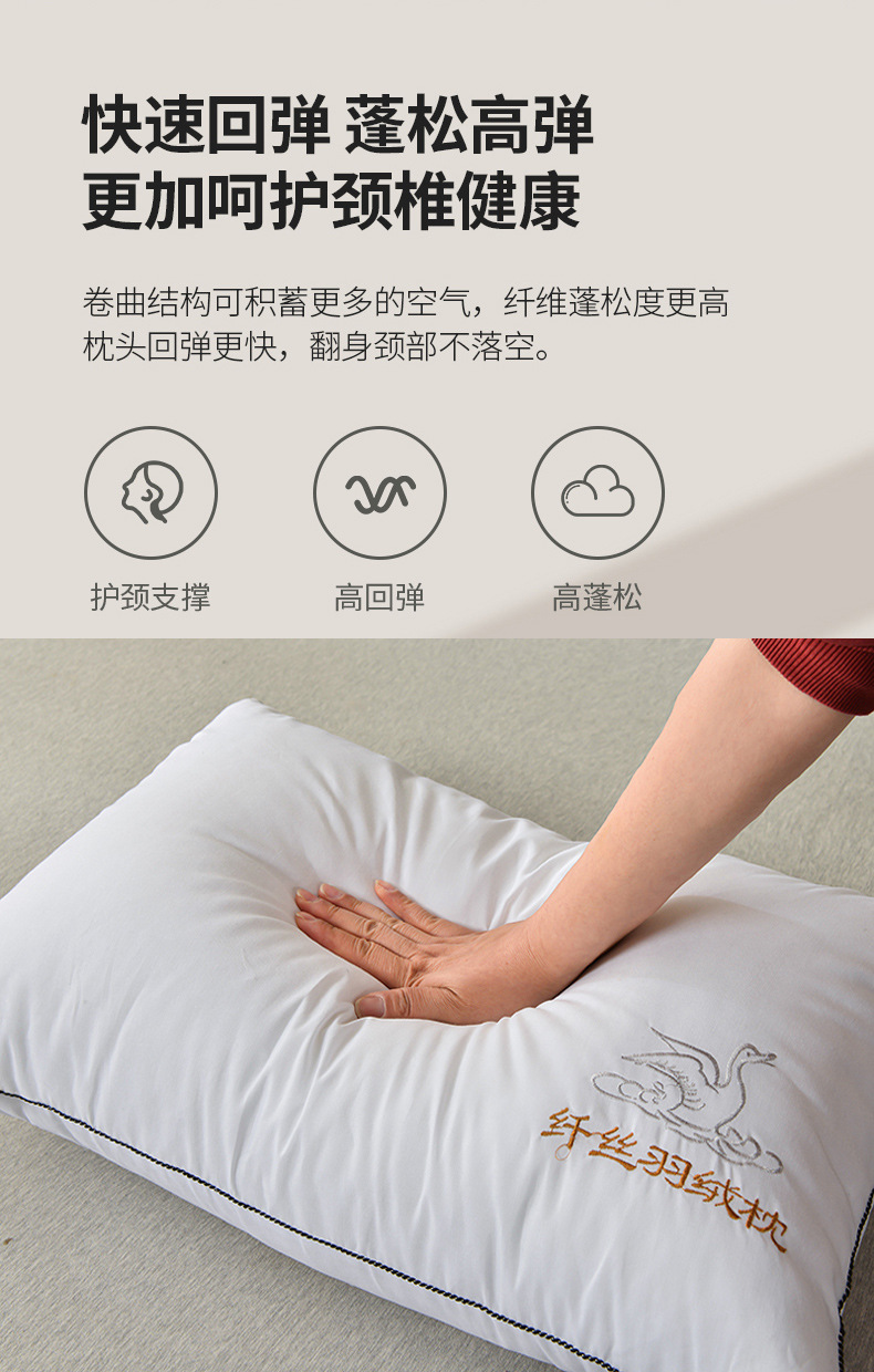 商品名称:合恒工品酒店纤丝羽丝绒刺绣枕芯 老鸭家用高弹纤维枕 单人学生护颈枕头