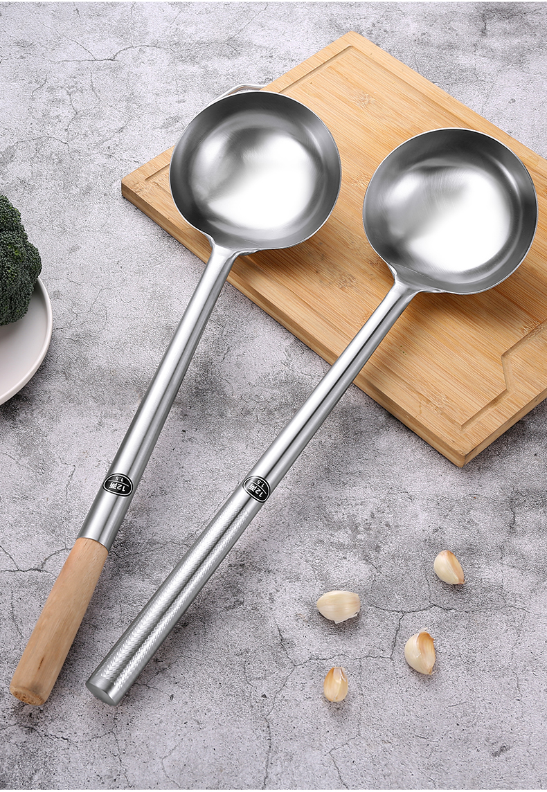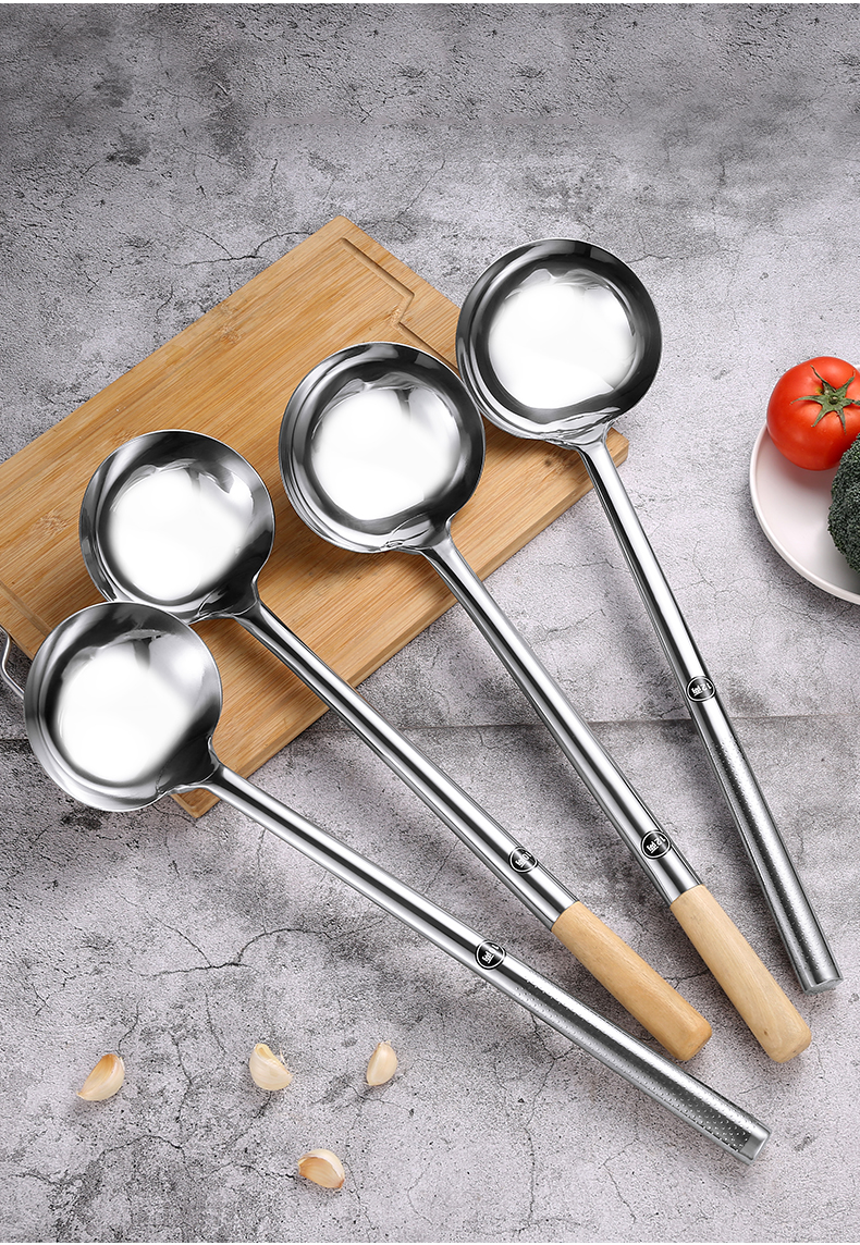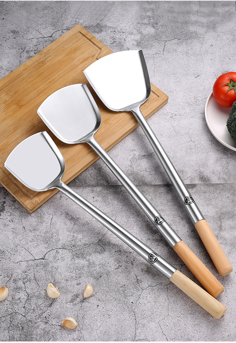 酒店厨师 加厚手勺不锈钢木柄炒勺锅铲 勺子食堂炒菜勺厨房老式铲子