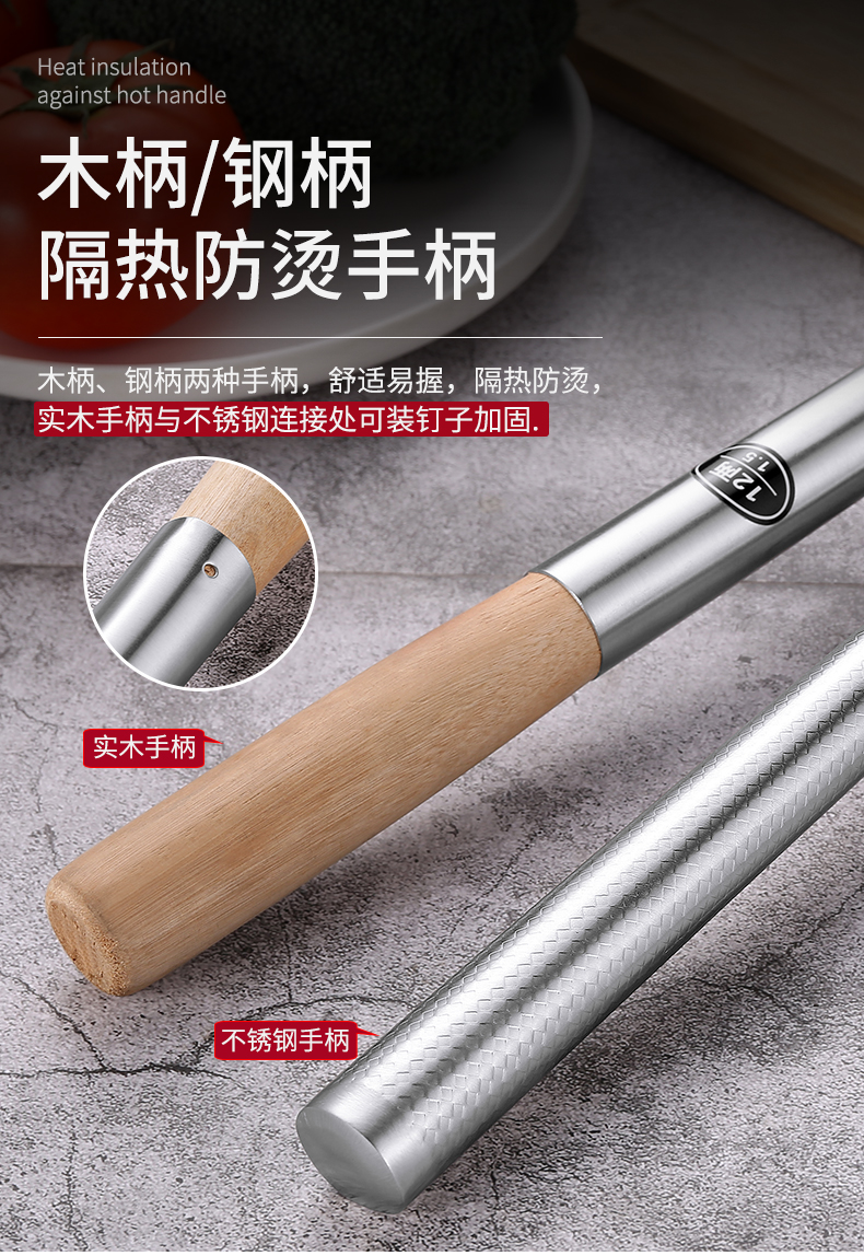 商品名称:酒店厨师 加厚手勺不锈钢木柄炒勺锅铲 勺子食堂炒菜勺厨房老式铲子