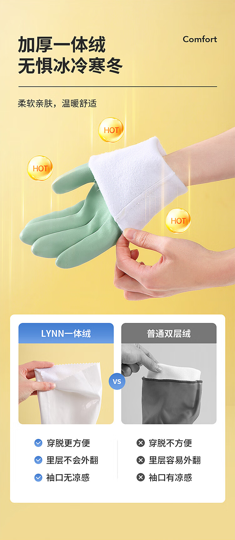 包装清单:1合恒工品 洗碗手套双拼色 32cm炫掌不加绒S/M