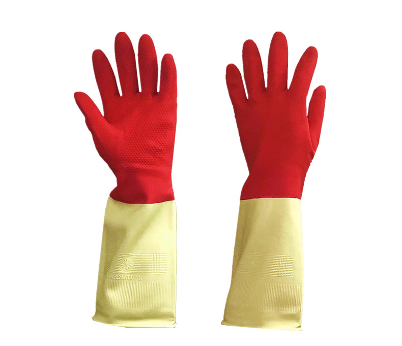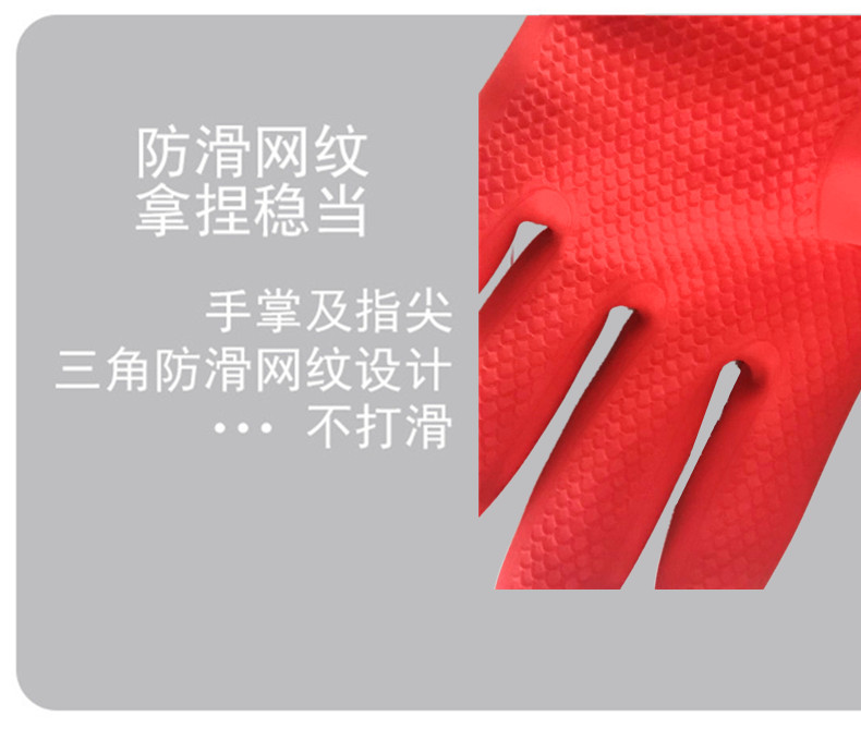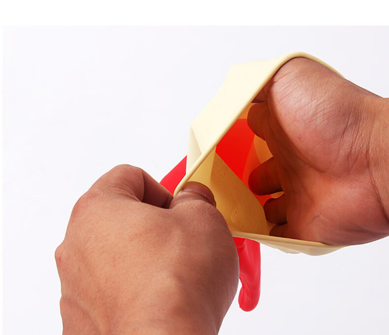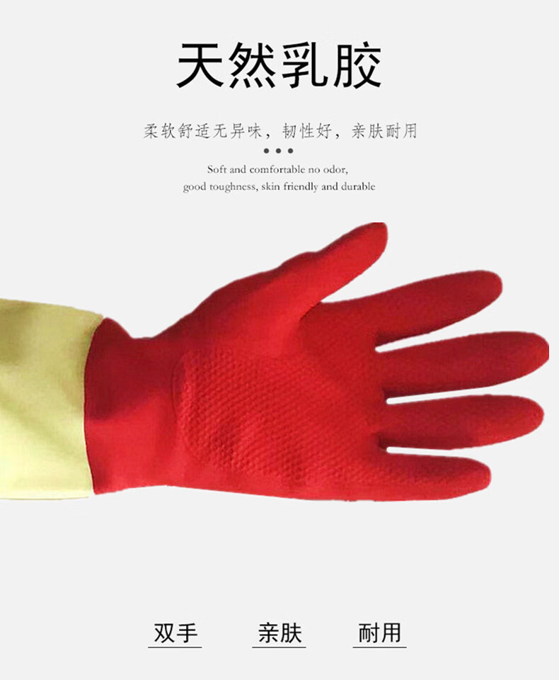商品名称:合恒工品 双色乳胶手套 橡胶手套 31cm 65g乳胶不加绒