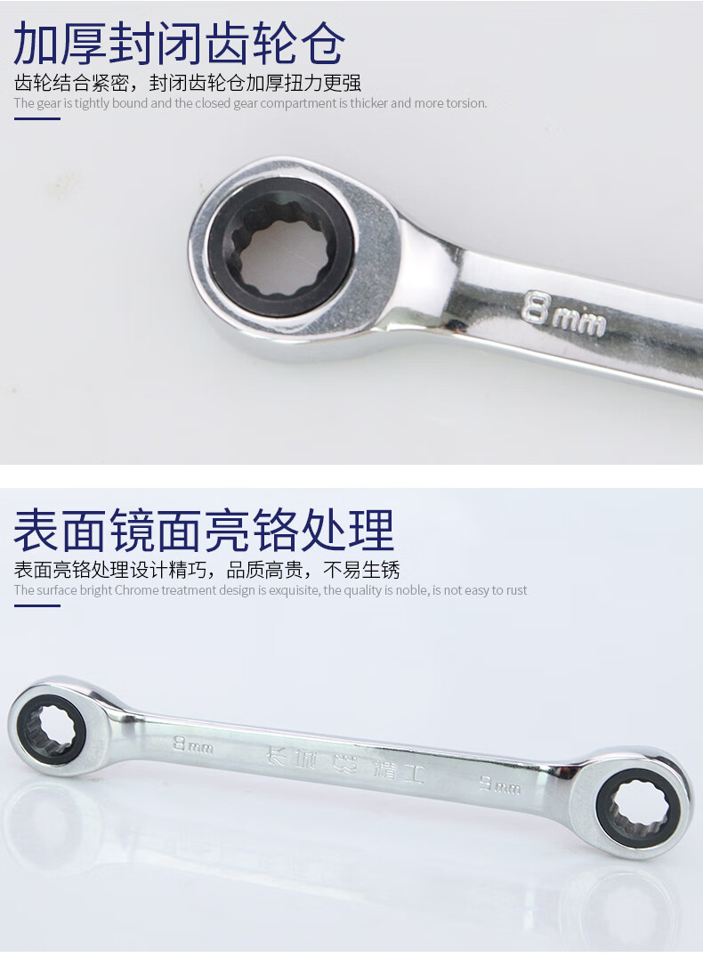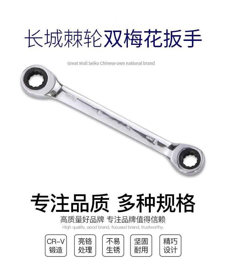 包装清单:1长城精工棘轮双梅花扳手自动双向快速棘轮扳手双梅花