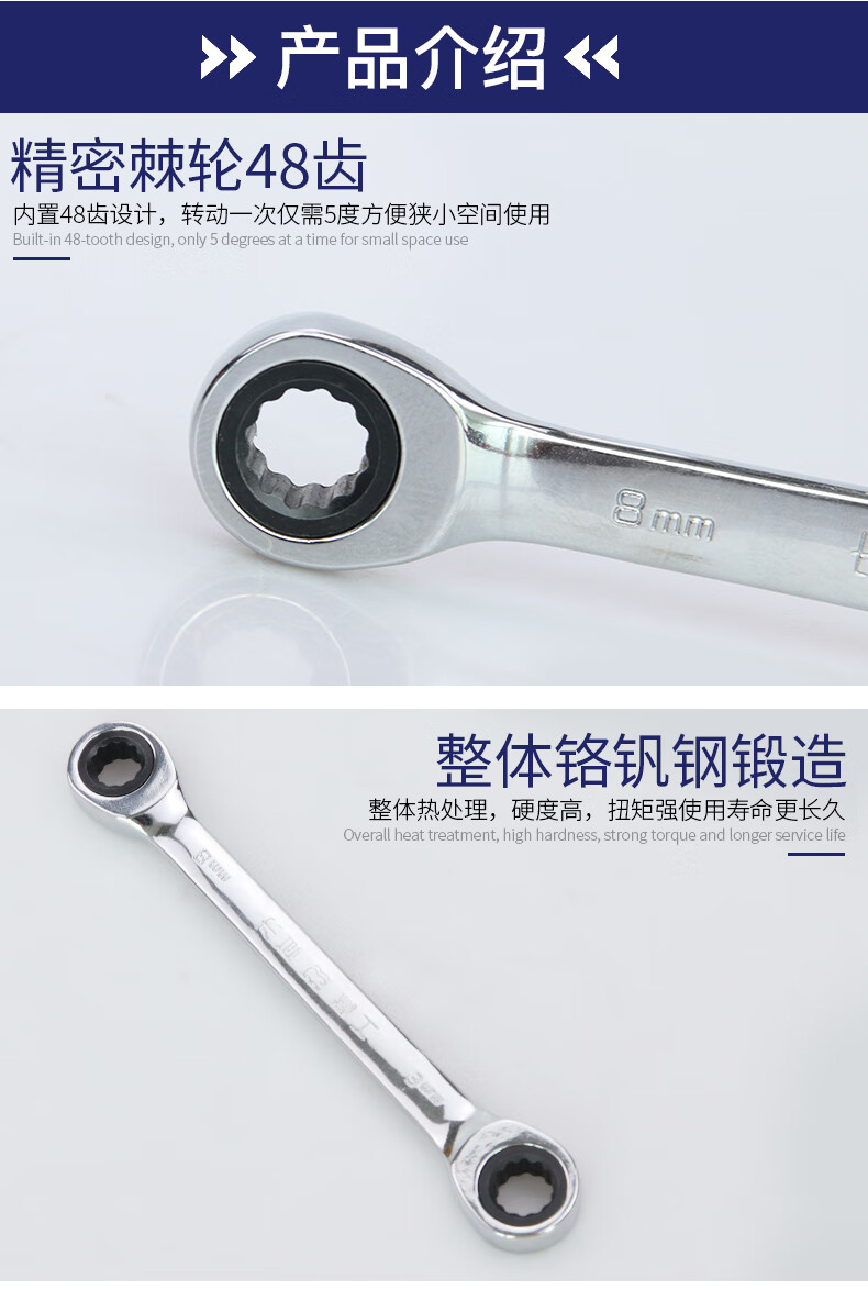 商品名称:长城精工棘轮双梅花扳手自动双向快速棘轮扳手双梅花