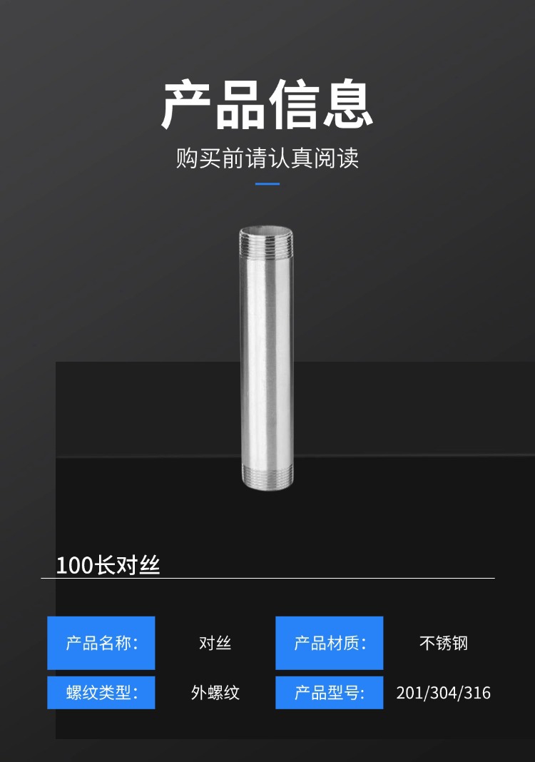 包装清单:1合恒工品 HHGP 加长对丝 双头丝加长管外丝不锈钢双头