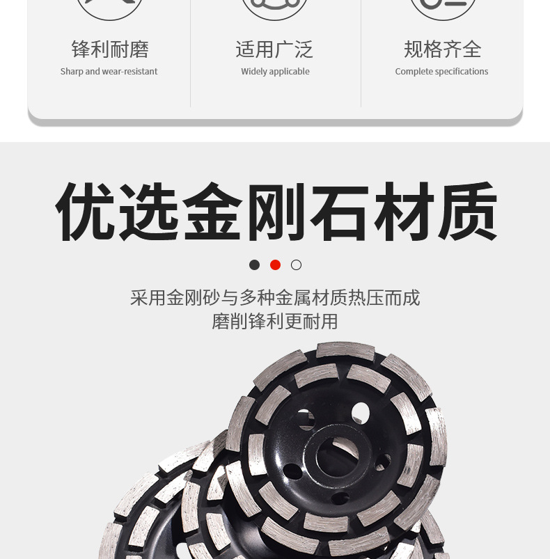 包装清单:1金鹏双排碗磨锋利耐磨 经久耐用 混凝土 石材打磨合金 金刚石磨光片