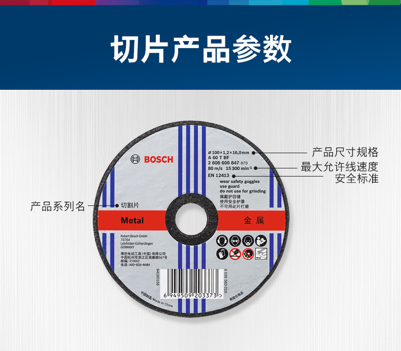 商品名称:博世 BOSCH 实用系列磨切片 金属切片105*16*1.2mm 金属砂轮切割片