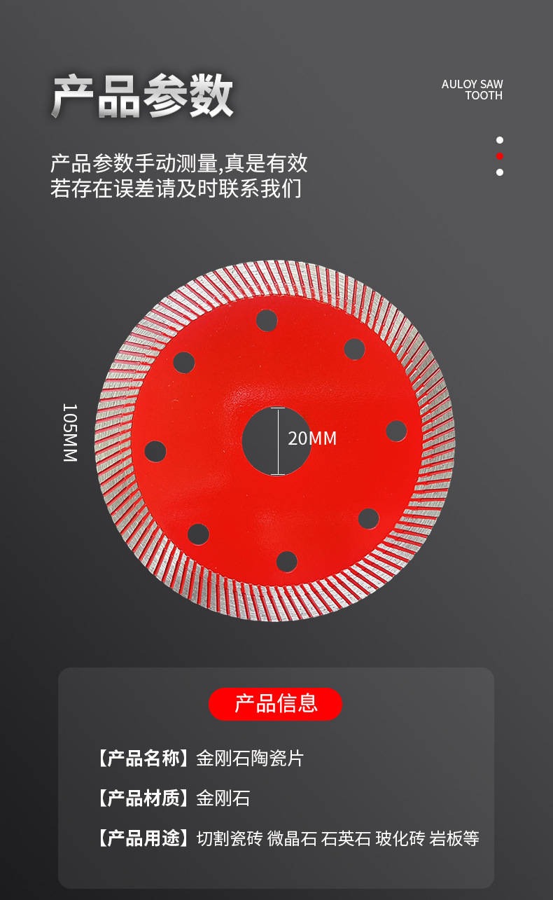 包装清单:1金鹏岩板专用切割片切割光滑 持久耐用 切割瓷砖玻璃大理石合金 金刚石切割片
