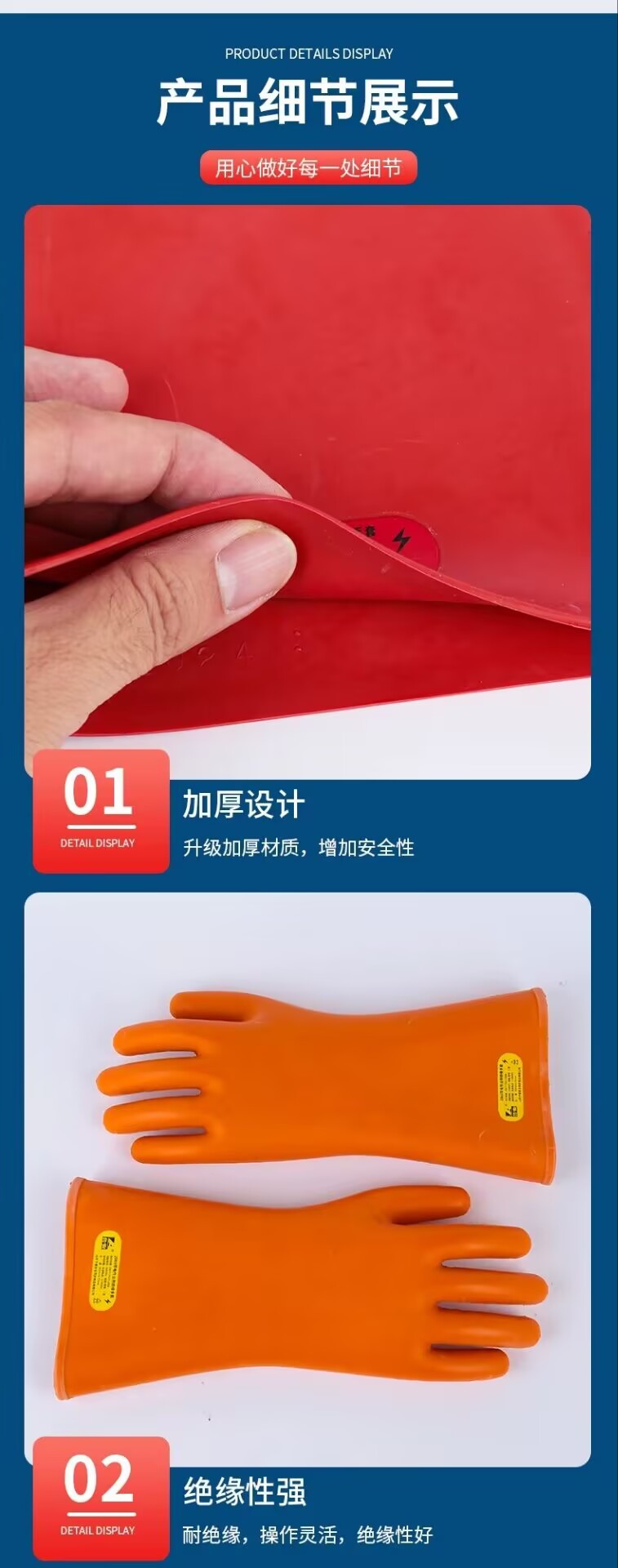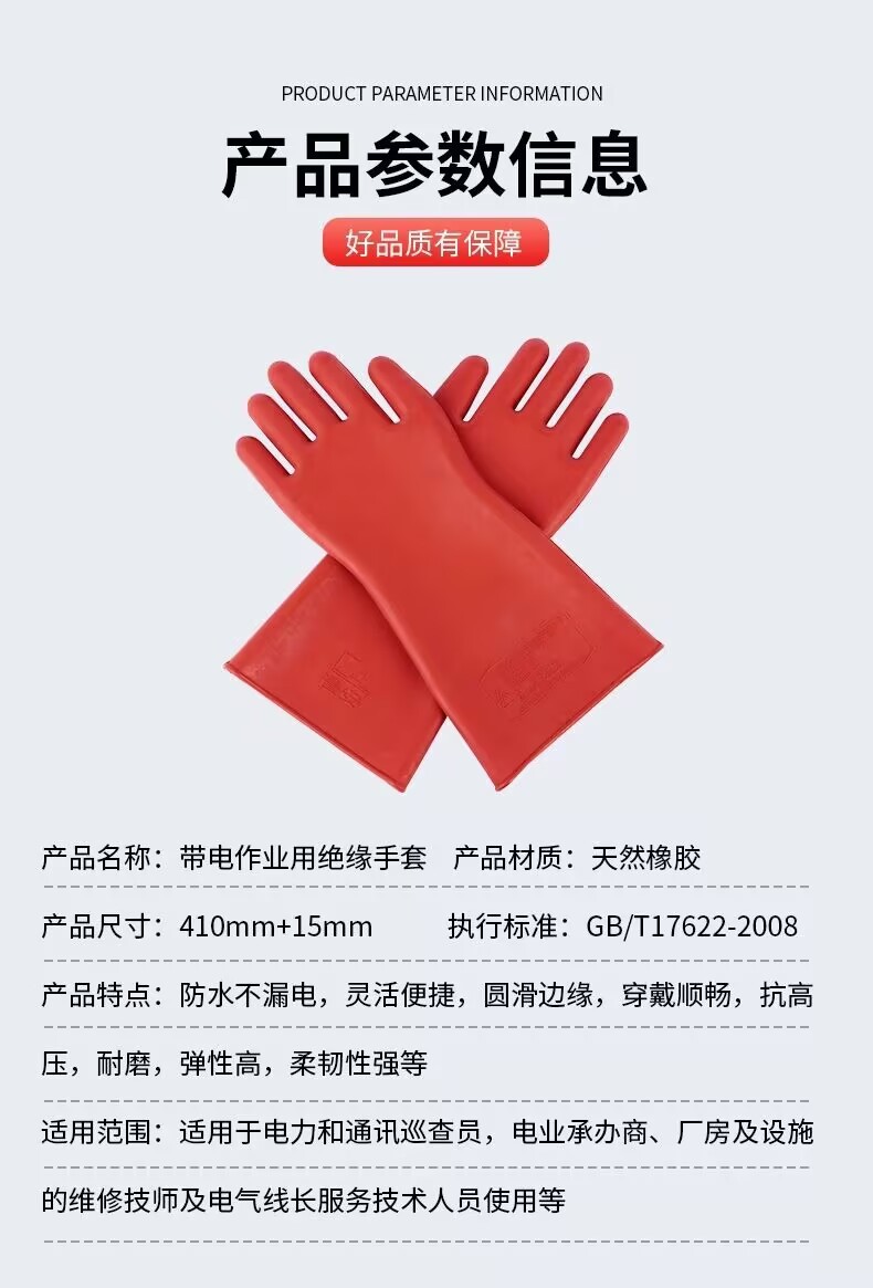 包装清单:1鲁安绝缘手套 带电作业电工安全绝缘防触电橡胶手套 劳保绝缘手套