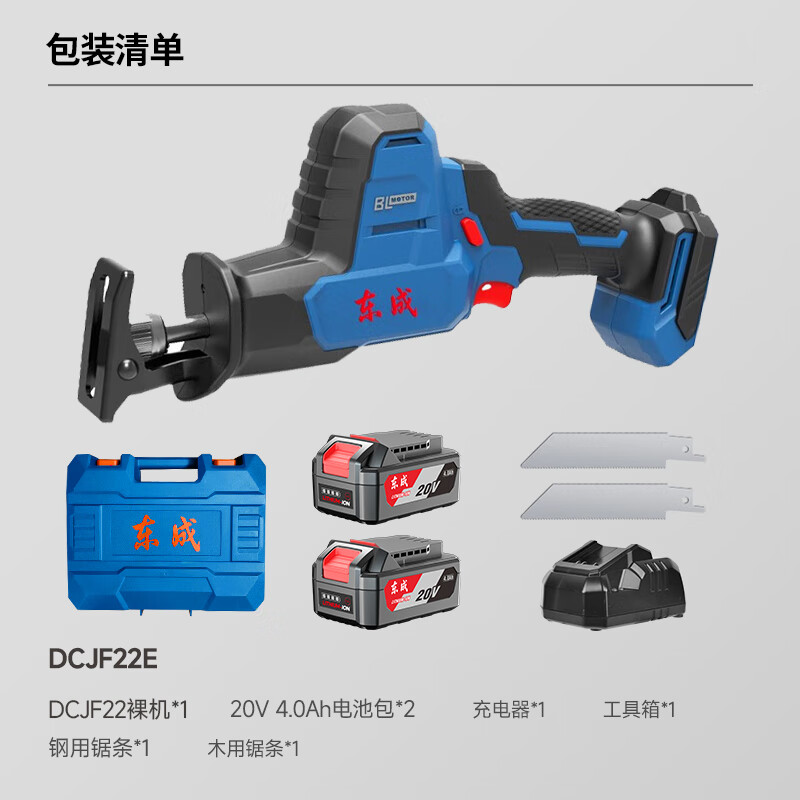包装清单:1东成 DongCheng 充电式无刷往复锯DCJF22(E型)20V4.0ah*2DCJF22(E型)20V4.0ah*2